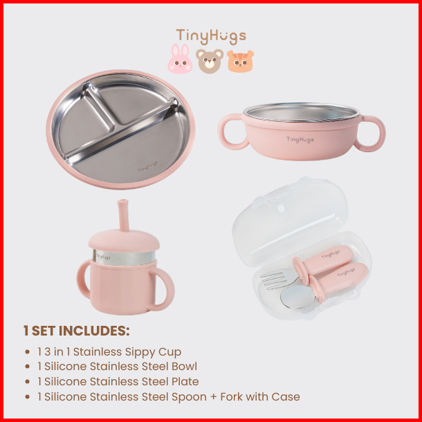 Tinyhugs - Stainless Steel Feeding Set For Baby Toddler And Kids Set Peralatan Makan Stainless Anak Bayi Bpa Free Mpasi