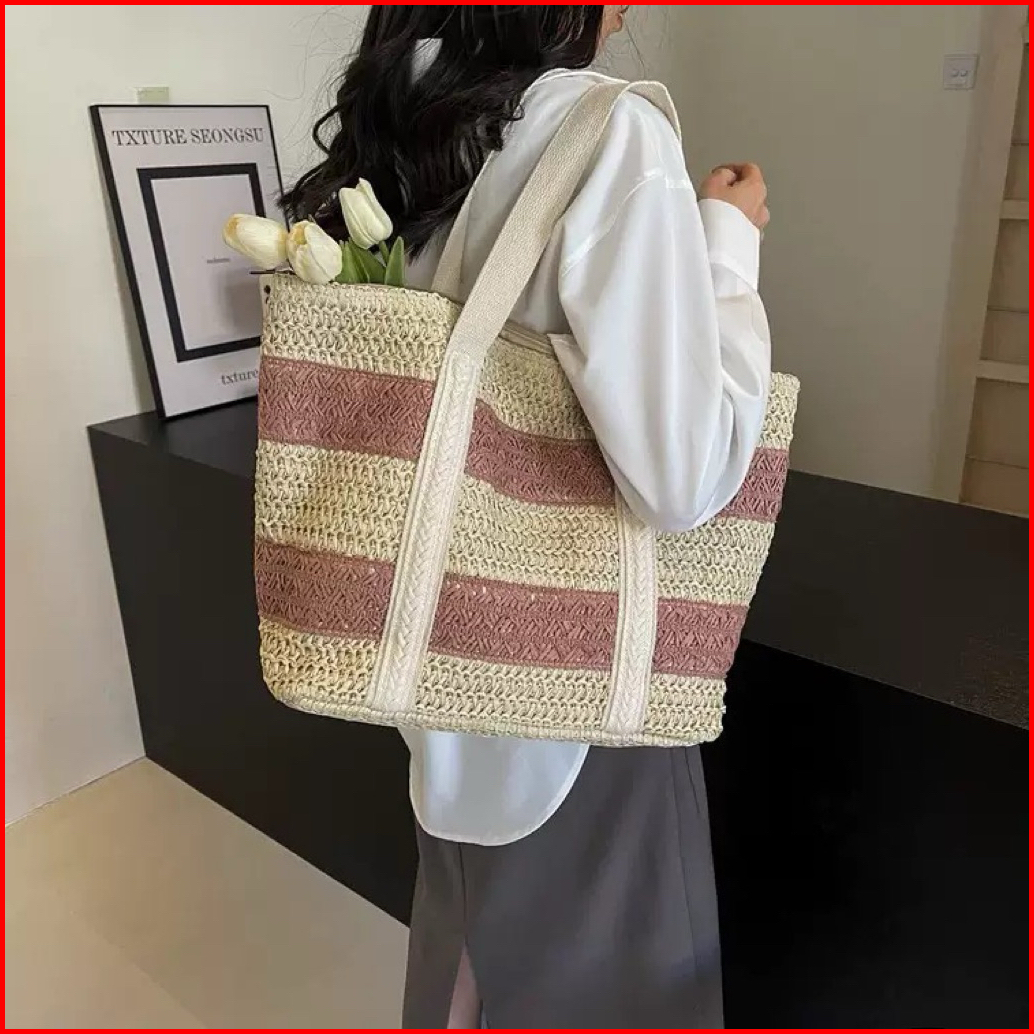 Tas Bahu Pantai Wanita Tas Cewek Ketiak Straw Woven Shoulder Beach Bag Pz 333