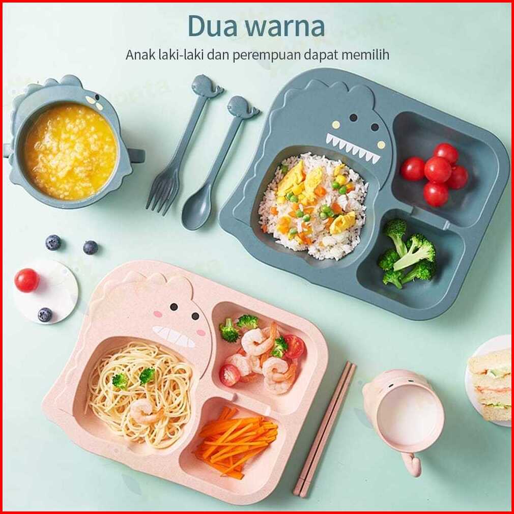 Set Tempat Makan Mangkuk Gelas Bayi Bentuk Dinosaurus Desain Kartun Dinosaurus