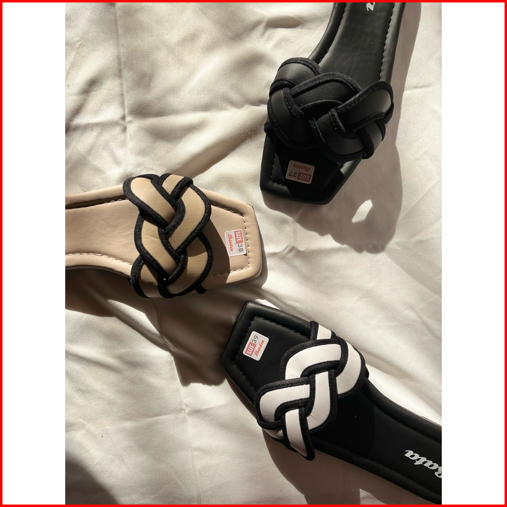 Sandal Flat Teplek Pijakan Empuk Wanita Elegan Trendi Fashion Wanita Sandal Slip On Kekinian - 01