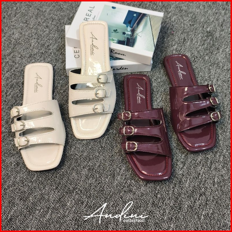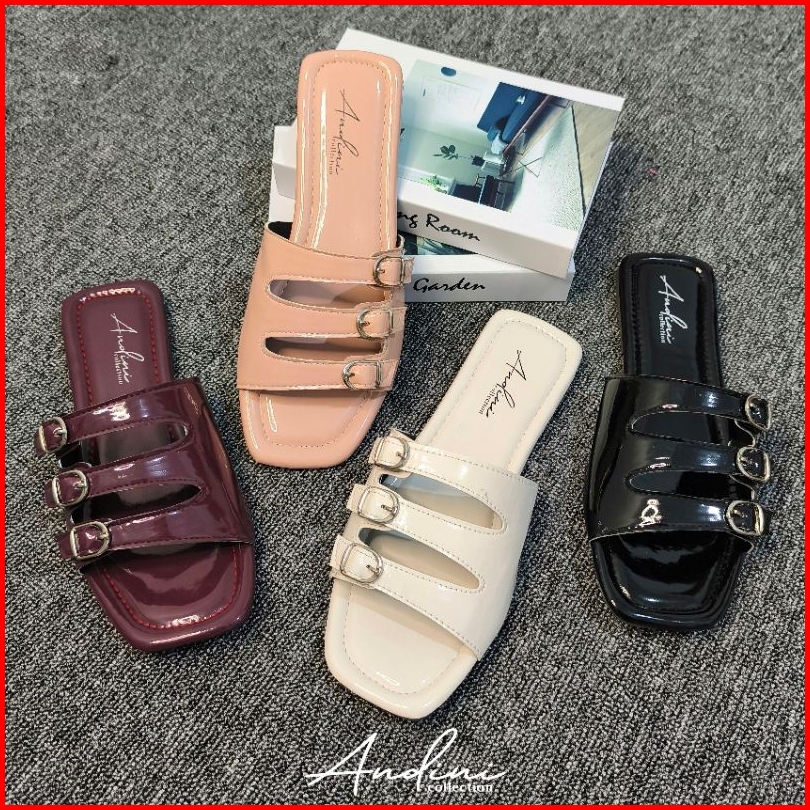 Andini - Sandal Wanita Flat Teplek Korea Style Empuk Anti Slip Terbaru Kekinian Selop Wanita