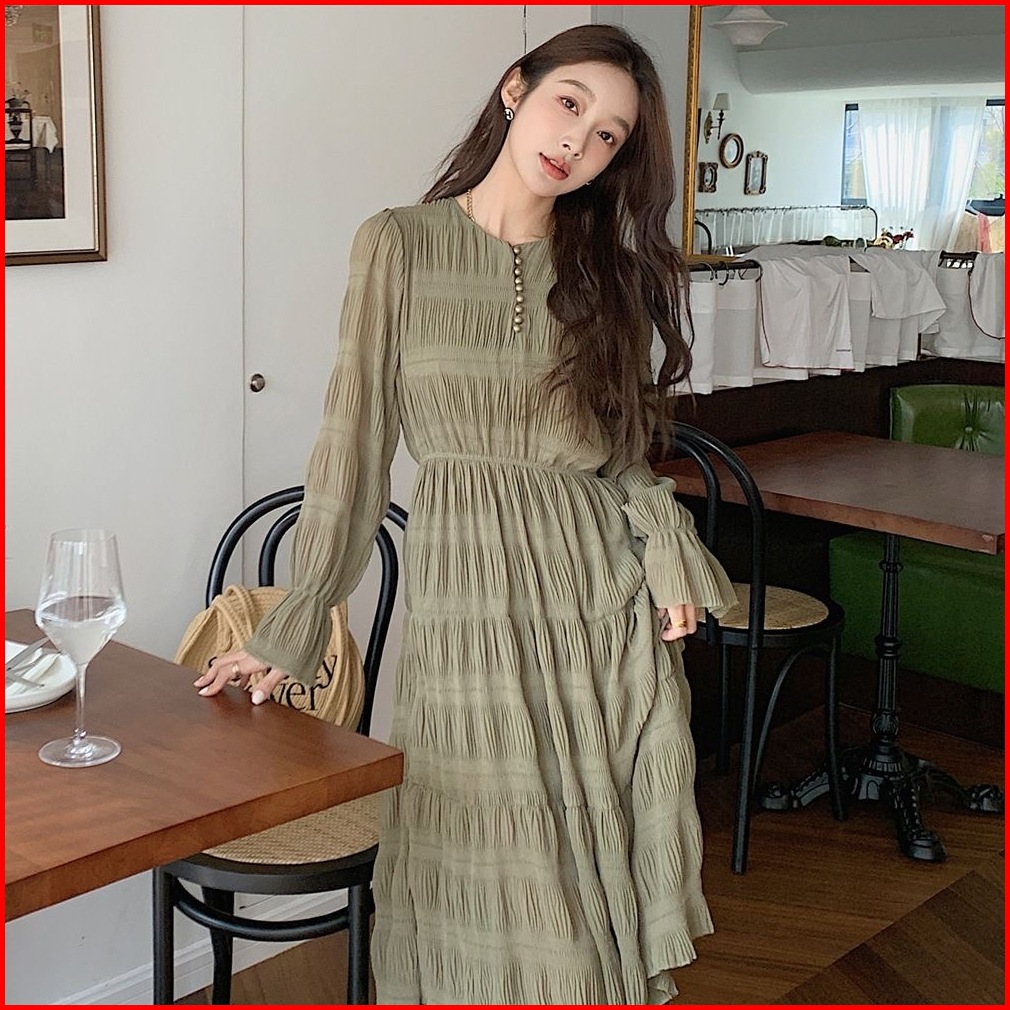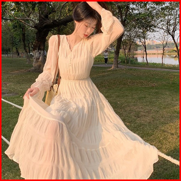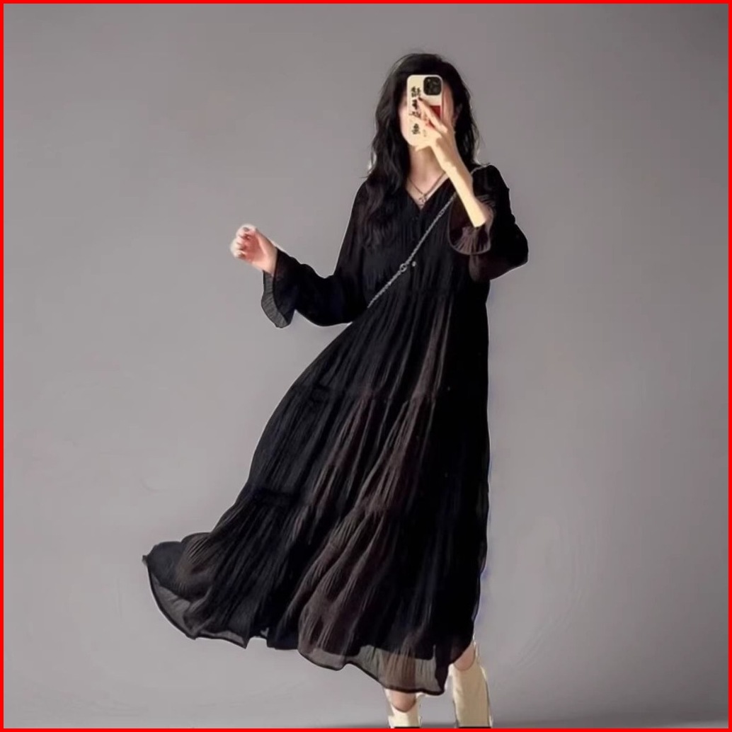 Dress Holiday Long Skirt Long Sleeve Chiffon For Women Dress Lengan Panjang M505