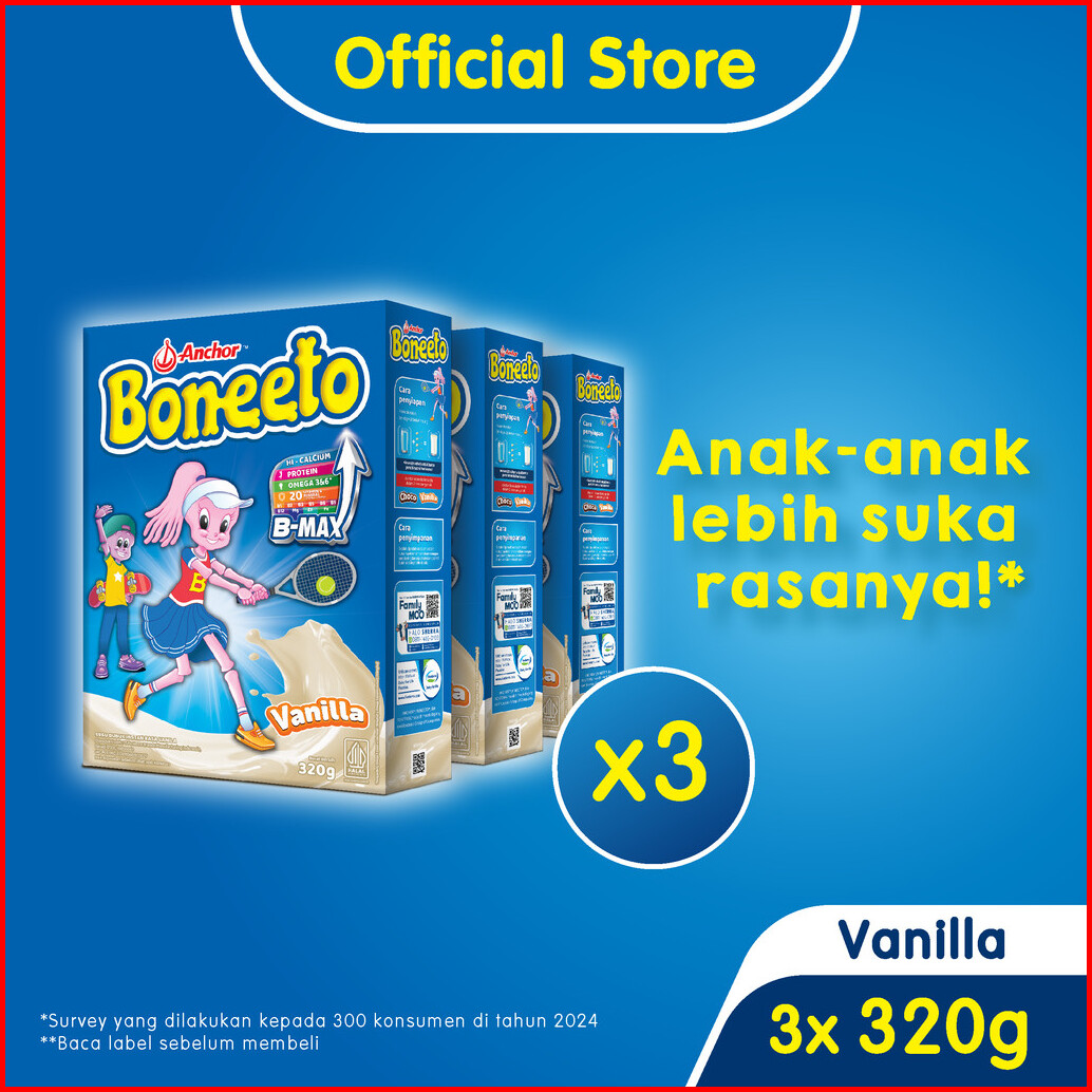 Boneeto Susu Bubuk Anak Sekolah Creamy Vanilla 3 X 340g - Nutrisi Pertumbuhan Anak Untuk Daya Pikir Dan Tubuh Aktif