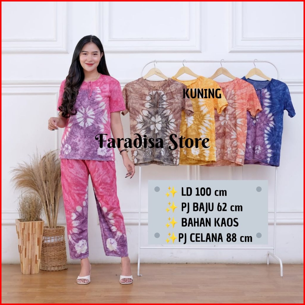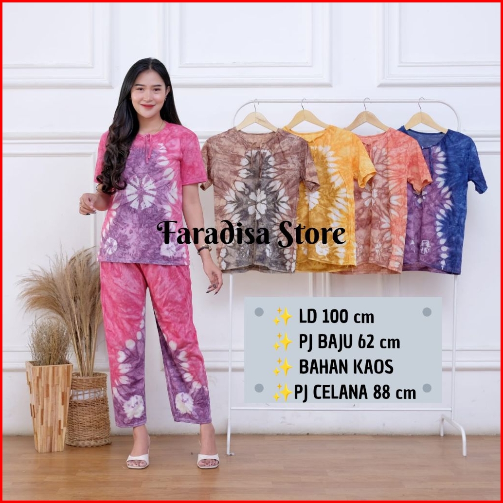 Setelan Wanita Kekinian Motif Mawar Tie Dye Baju Dan Celana Panjang Pakaian Santai Model Terbaru 2024 Busana Rumahan Piy