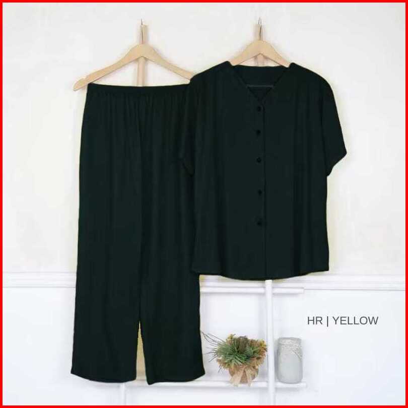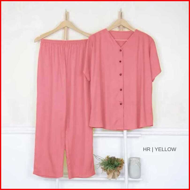 Setelan Piyama Kerah V Katun Setelan Wanita Set Kerah V