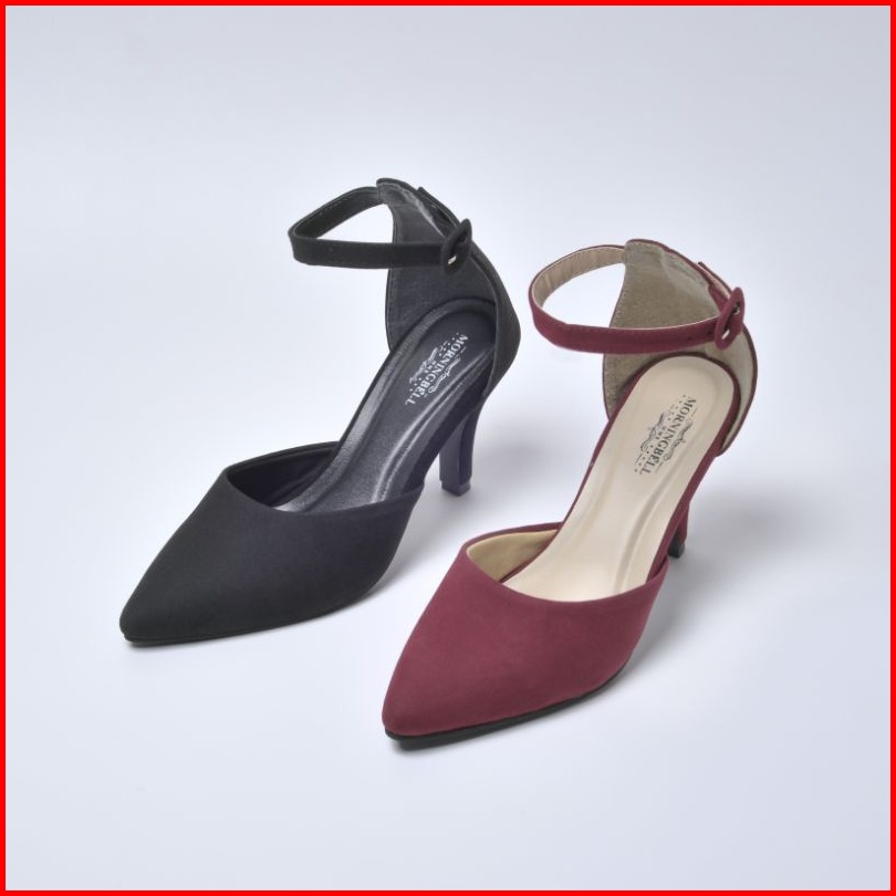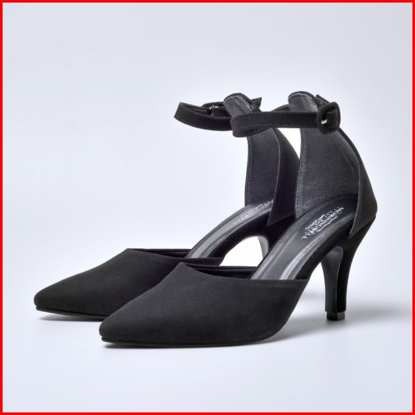 Sepatu High Heels Wanita Kokop Tali Kancing Suede Mr-017