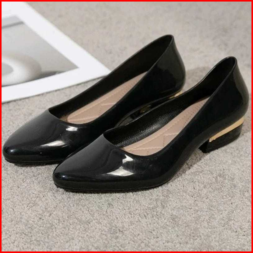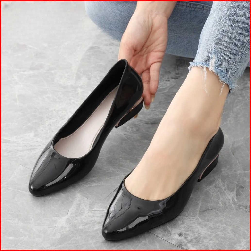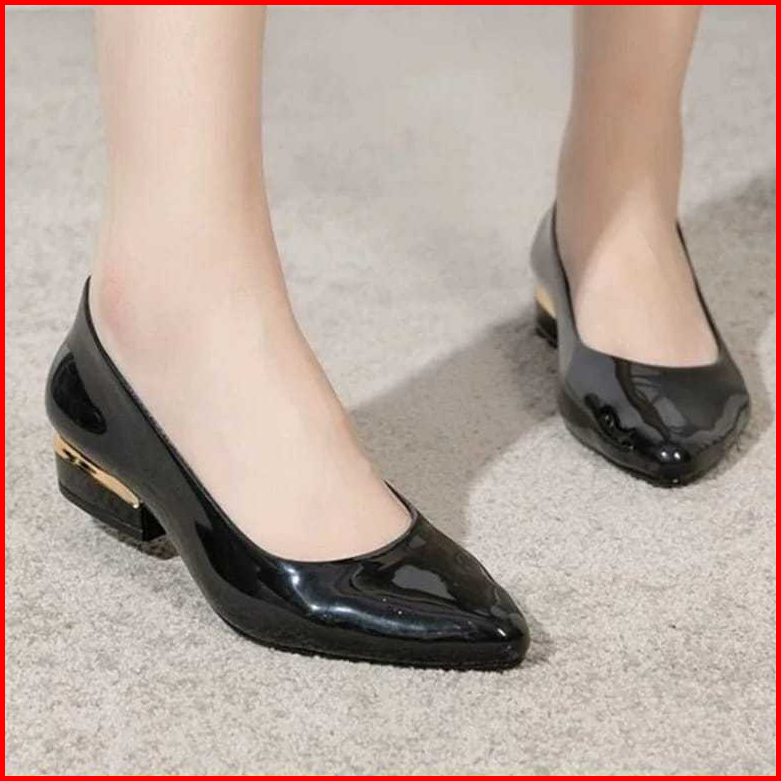 Sepatu Wanita Hak Tahu 3 Cm Hitam Mengkilat Sepatu Heels Hak Sedang Wanita Hitam Polos Terbaru