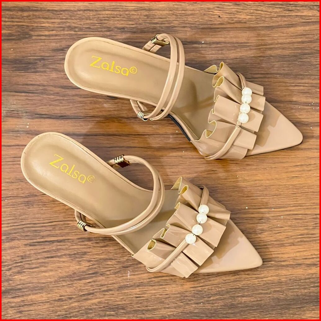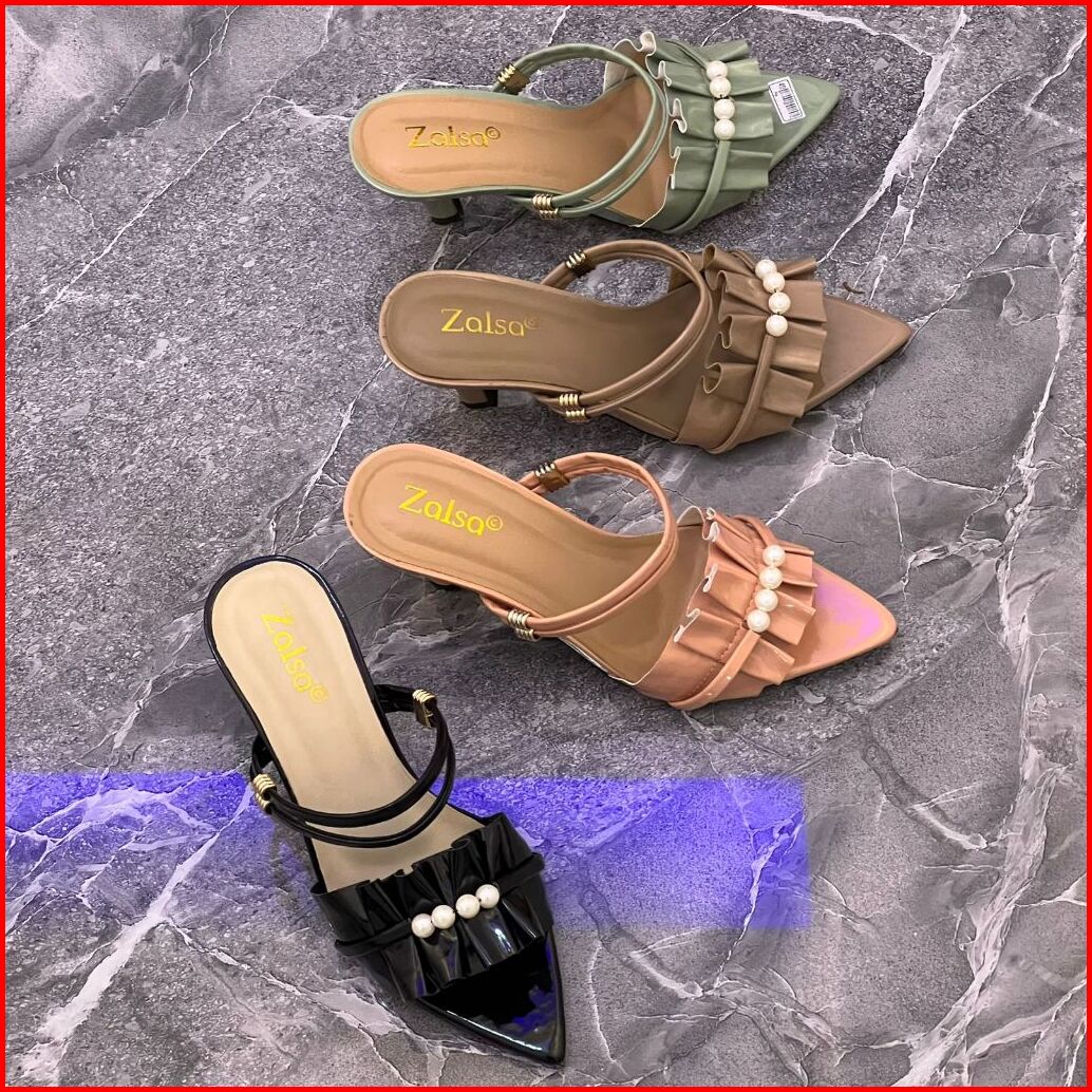 Sepatu High Heels Wanita Selop Tali Mutiara Viola