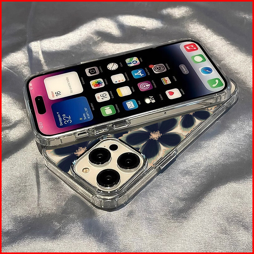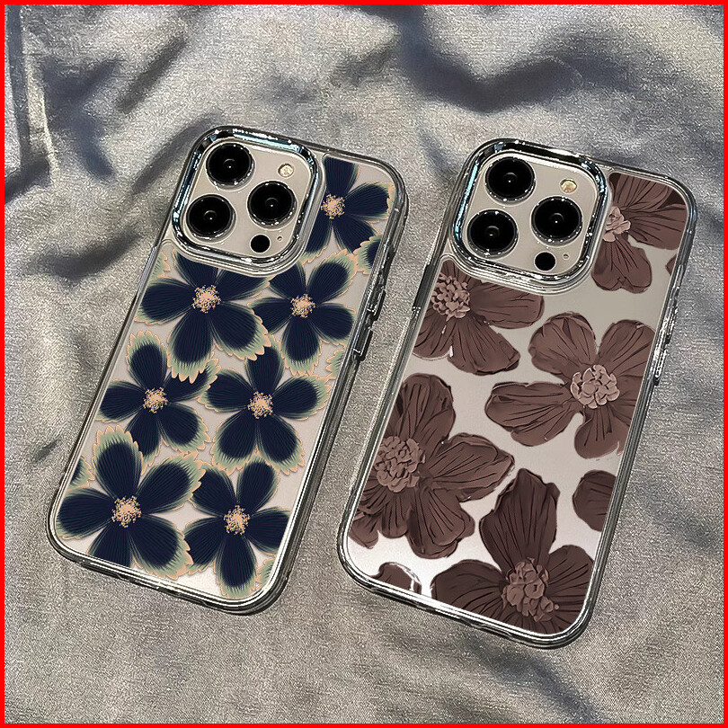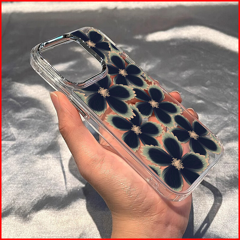 Cocok Untuk Casing Ponsel Iphone 16 11 12 13 14 15 Pro Max Casing Ponsel Bunga Hitam Xr Xs Max 7 8 Plus Nuansa Logam Tah