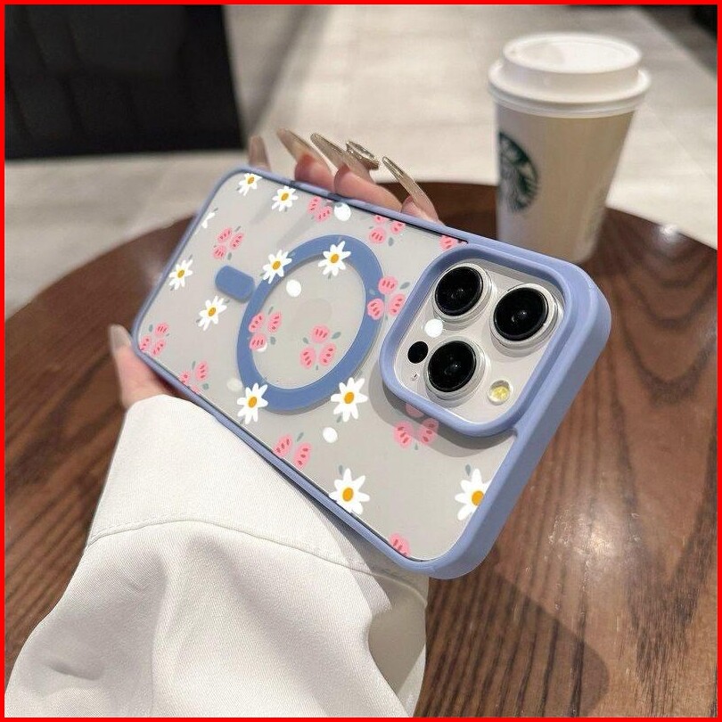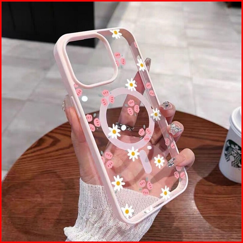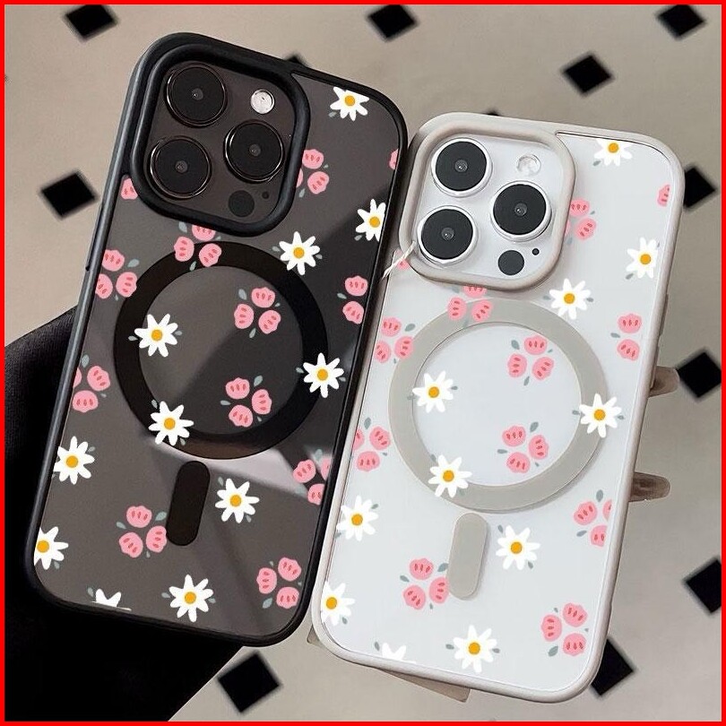 Case Iphone 11 Bunga Merah Muda Dan Putih Dengan Magnet Casing Ponsel Cocok Untuk Iphone 11 11promax Softcase Macaron 12