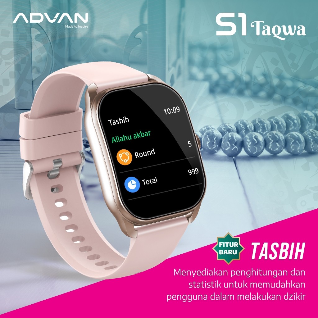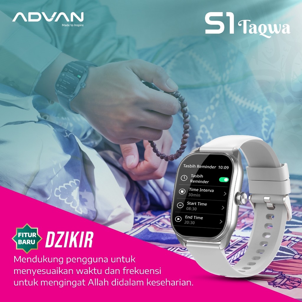 ADVAN Smartwatch S1 Taqwah – Fitur Islami IPS 2.01” Ai Voice Bluetooth Calls 100+ Sports Modes Long-lasting Battery