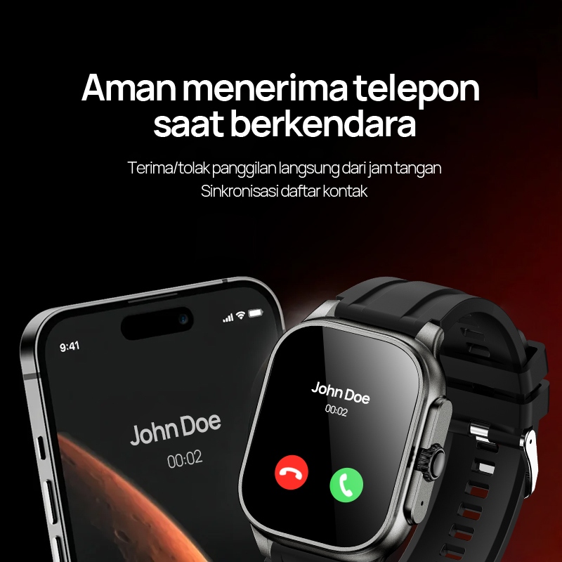 Smartwatch Muslim Premium - Titanium, IP68, Audio Quran 114 Surah, Tasbih Digital, Alarm Shalat, Kalender Hijriah, Deteksi Kesehatan, hadiah lebaran