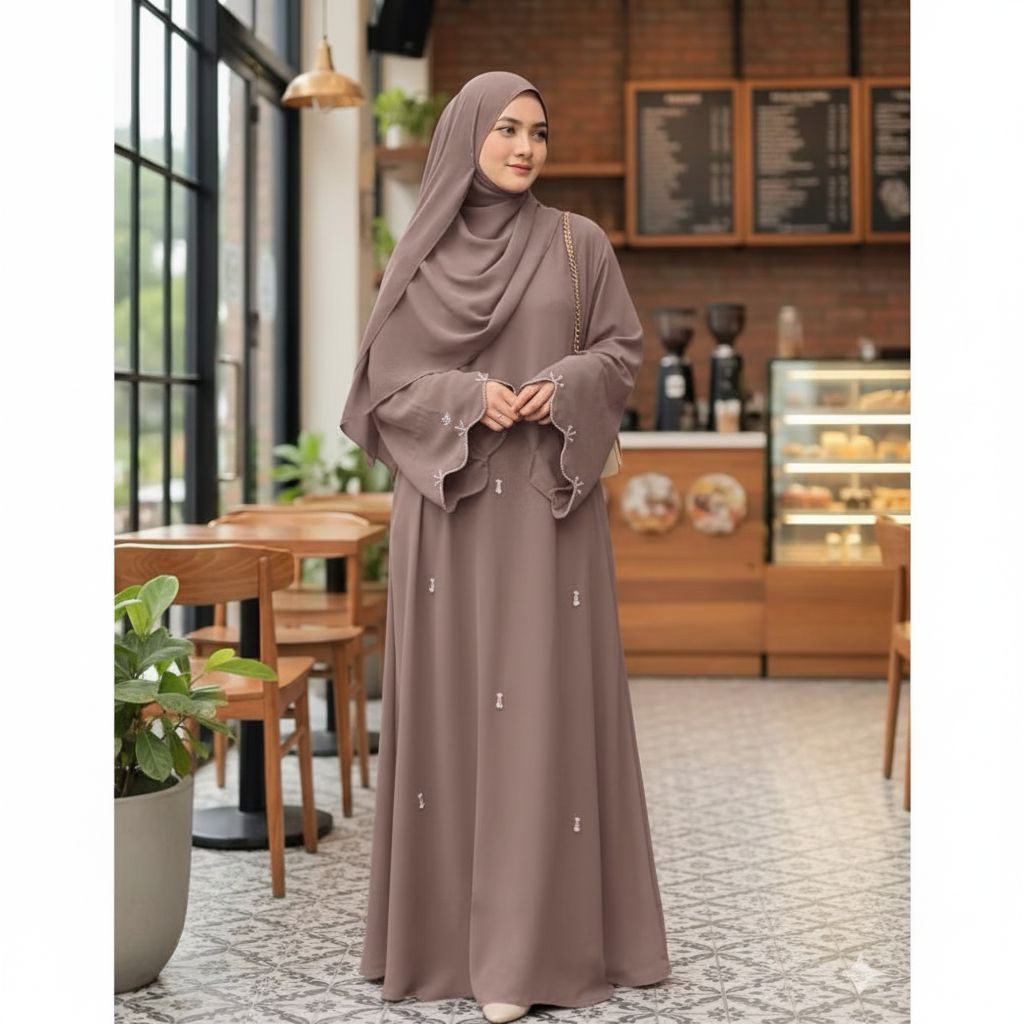 Alesa Abaya Gamis Simple Wanita Lebaran Terbaru 2026 Bahan Marbella Anti UV Ukuran S M L XL XXL XXXL