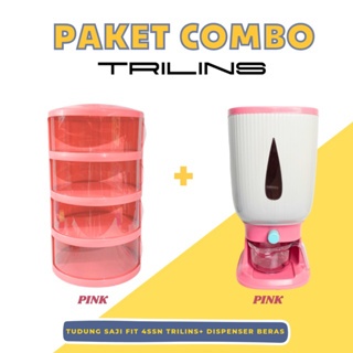 PAKET COMBO FIT Tudung Saji FIT 4 Susun Lebih Tebal Food Grade + Dispenser Beras Penyimpanan Beras