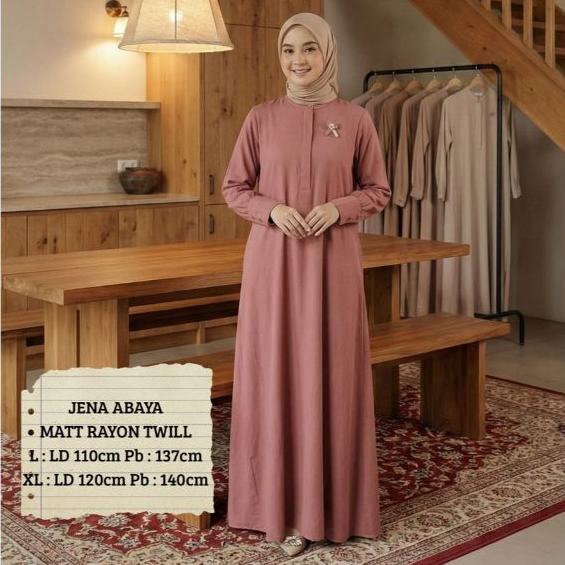 JENA ABAYA Gamis Rayon Twill Premium Jatuh Elegan Polos Busui Friendly & Wudhu Friendly