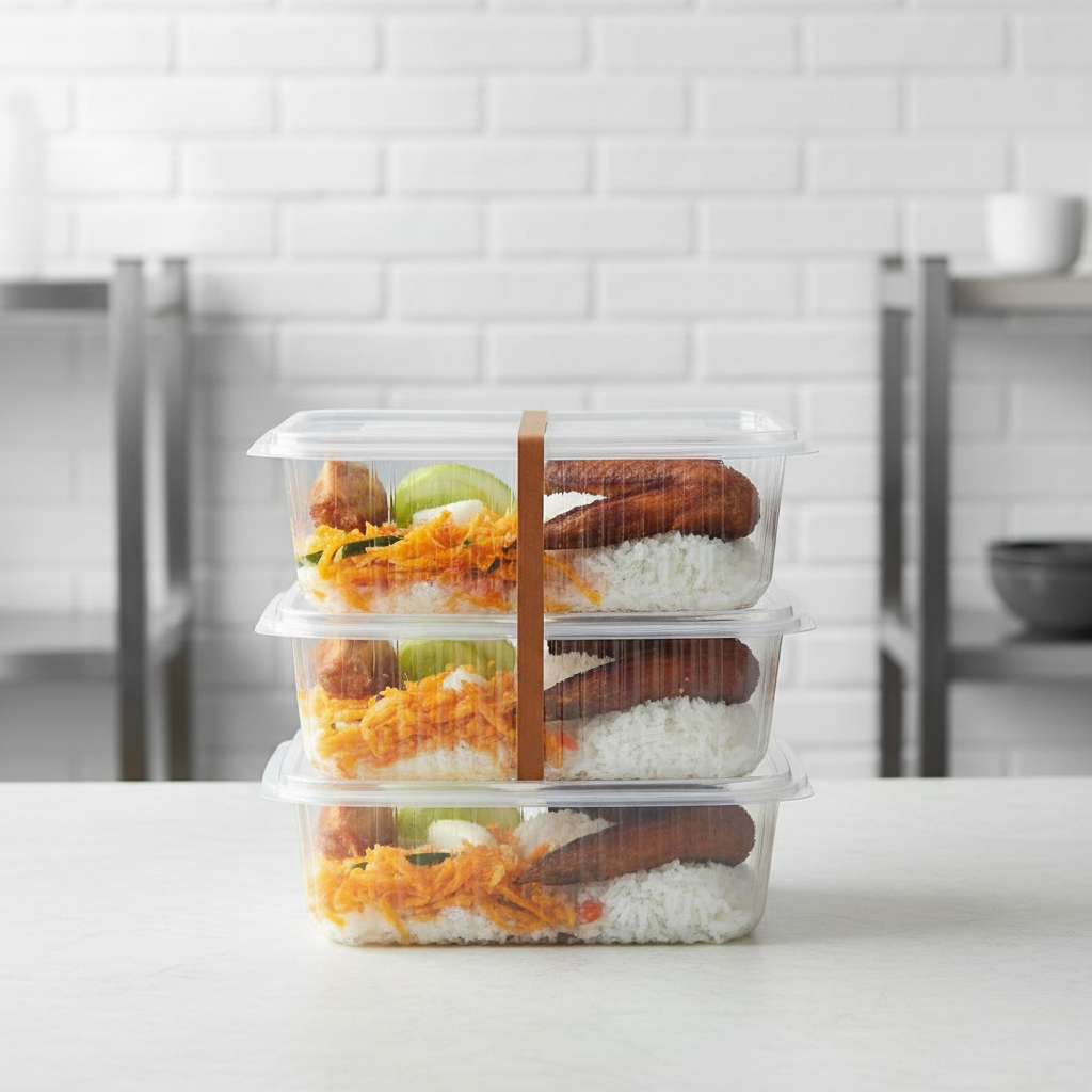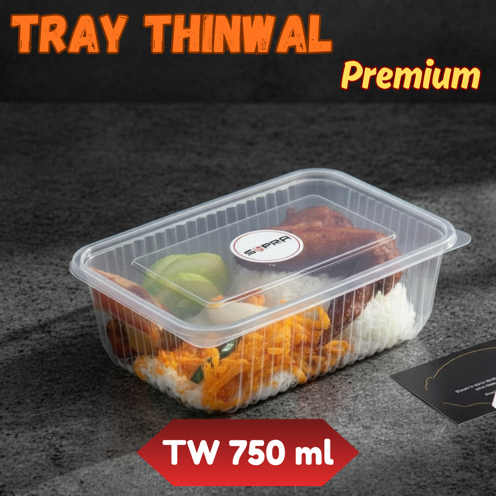 25pc Tray Thinwall 750ml / Wadah Nasi Catering Salad Thinwal Kotak Makan Rectangle Premium 750 ml