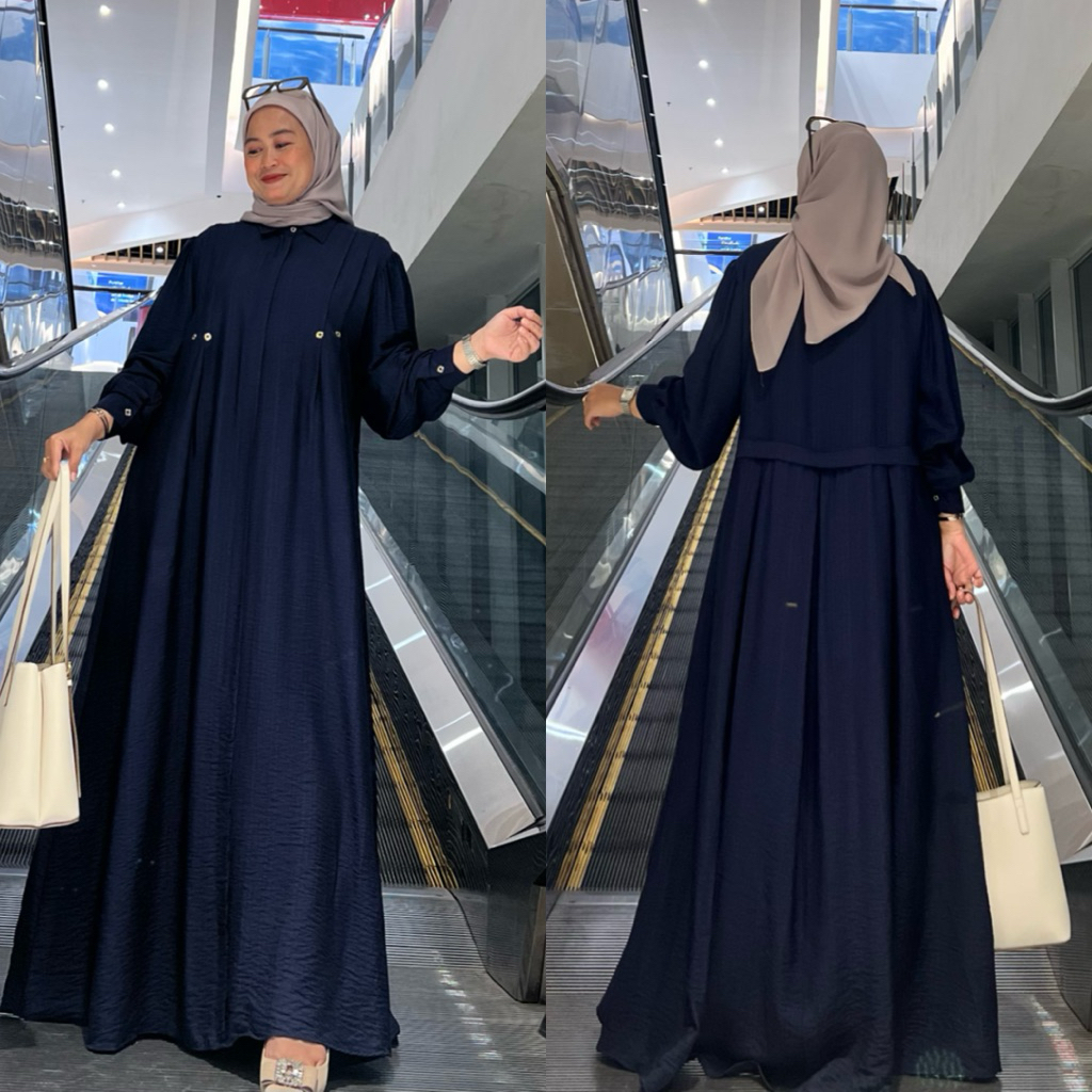 Shareena Dress Lebaran Gamis Katun Polo Linen Premium Ziper Busui Rempel Belakang Mewah