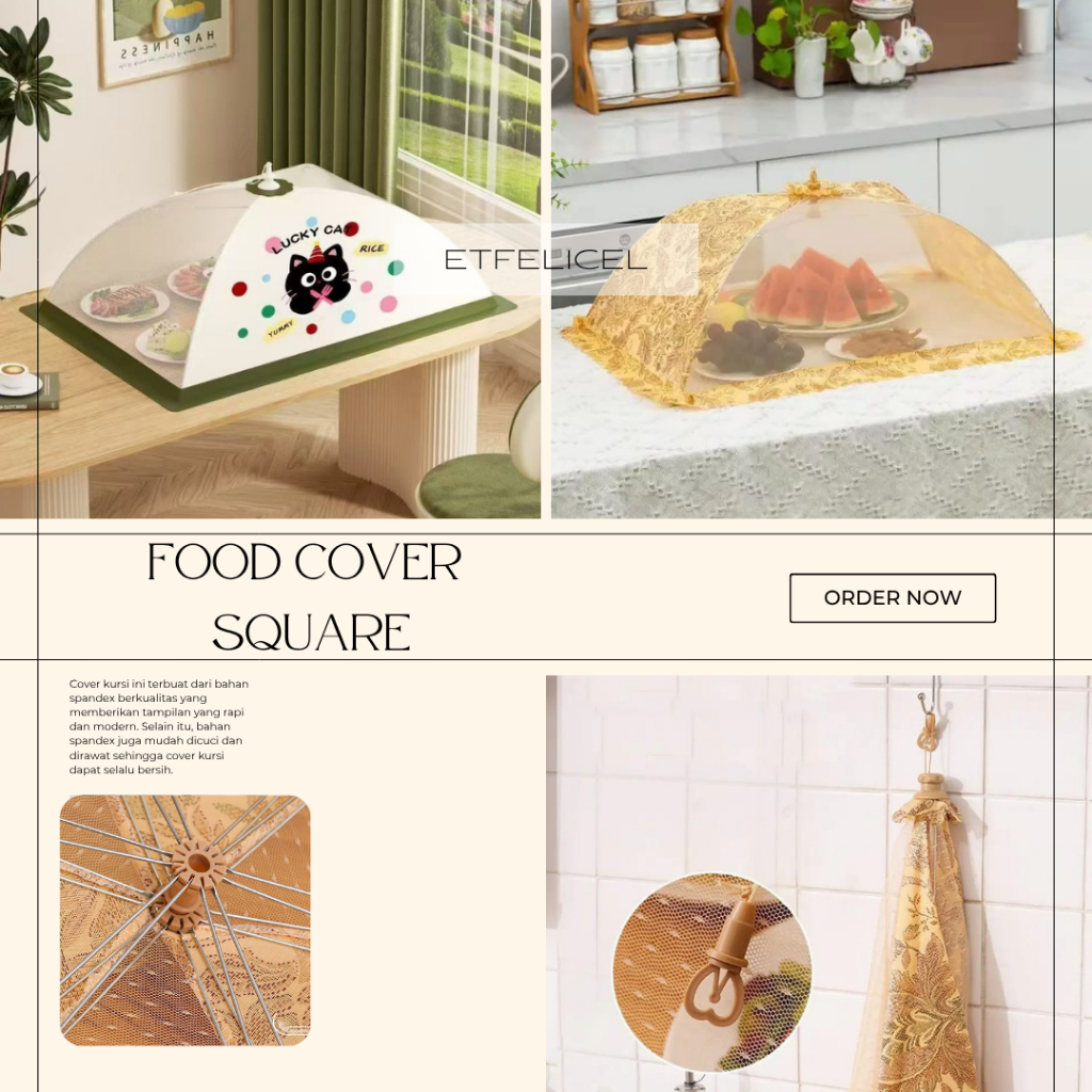 ETFELICEL Food Cover Square / Tudung Saji Lipat Segi Shabby Jaring Penutup Pelindung Makanan
