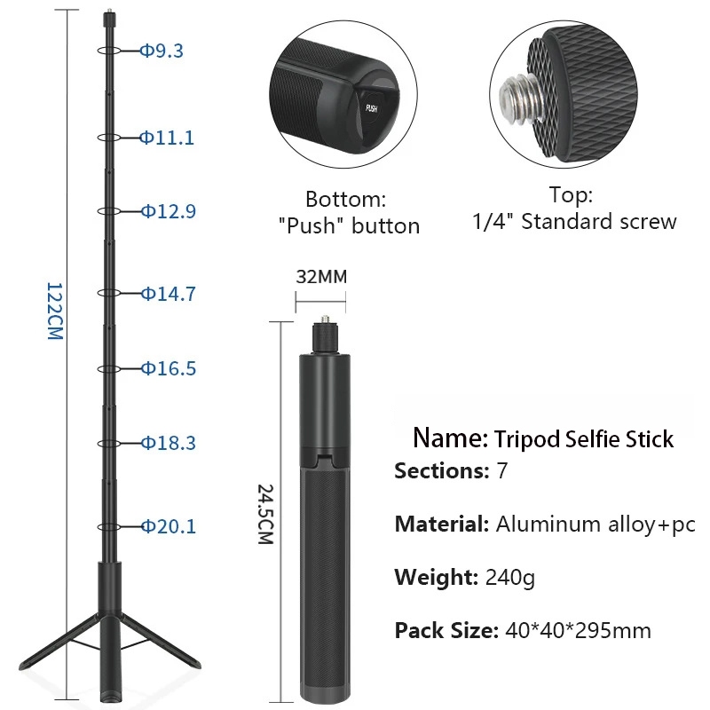 1.2Meter Tripod Tongsis Ultra Long Invisible Bullet Time Selfie Stick Tripod 1/4 Screw Action Camera Insta360 GoPro DJI Action With Tripod Leg For INSTA360 X5 X4 X3 Tongsis