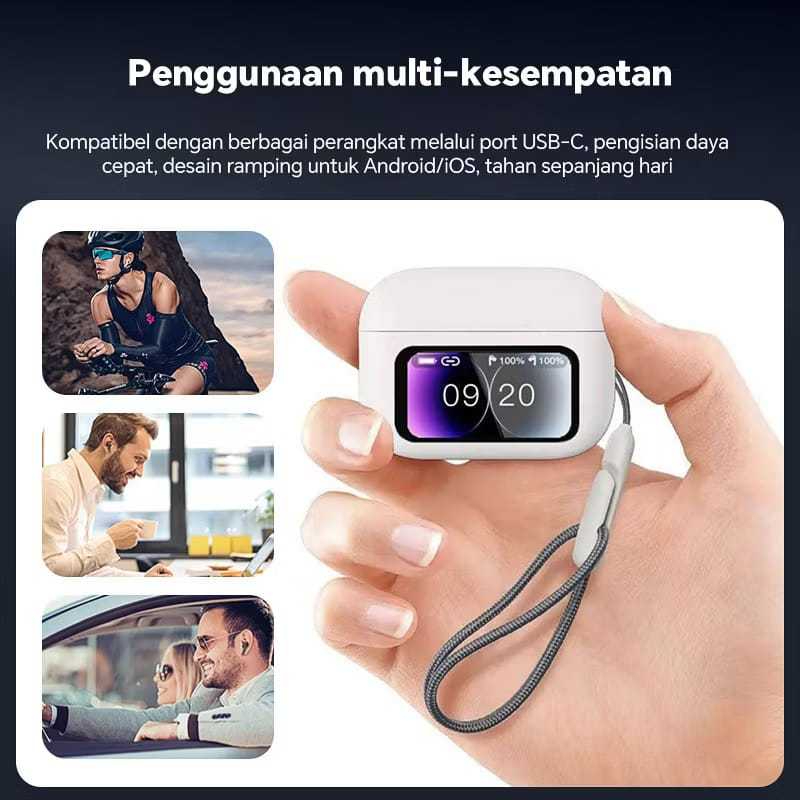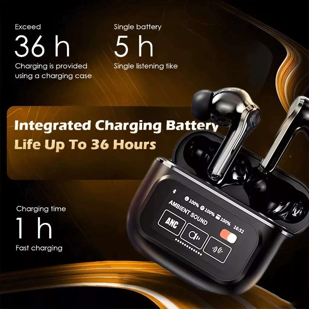 TWS A9 PRO ANC/ENC Smart Touch Screen TWS Earphone Headset Bluetooth V5.4 , Active Noise Reduction, True Wireless, Kontrol Sentuh,