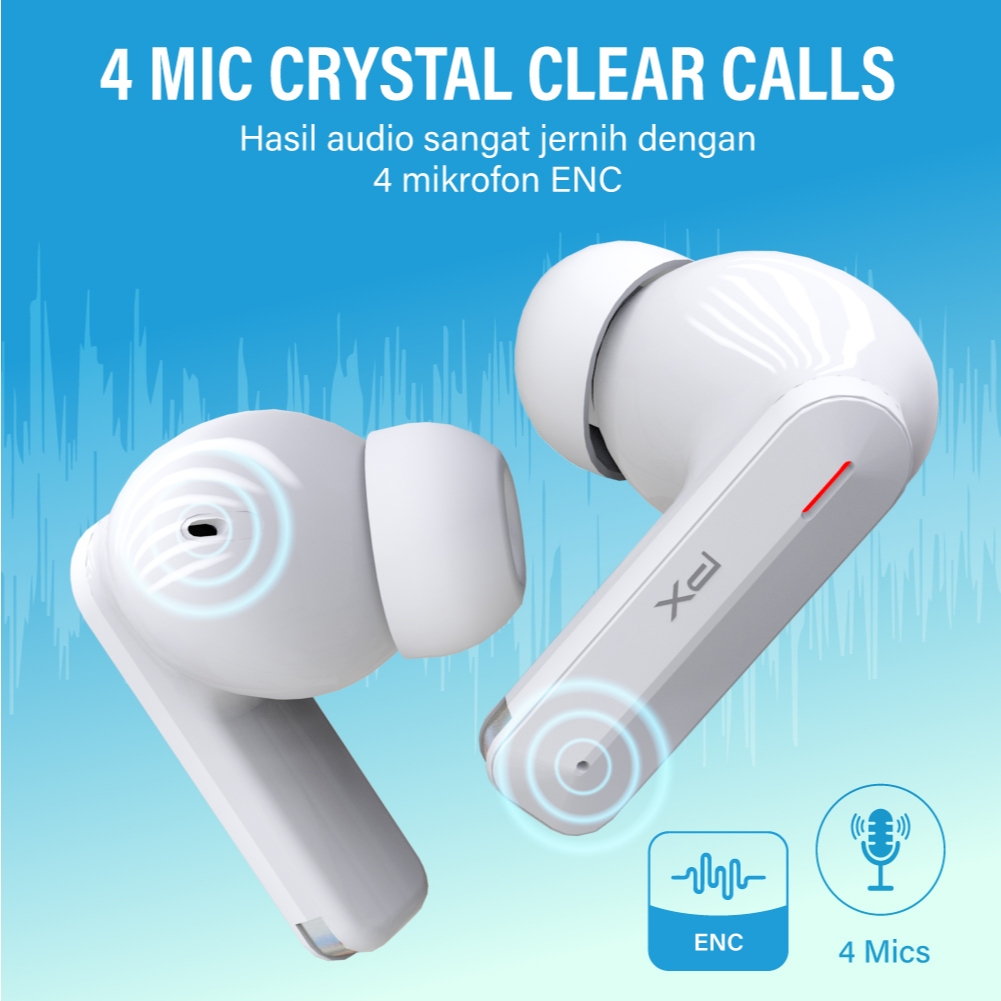Headset TWS Earphone Bluetooth 6.0 Earbuds Headphone True Wireless ENC 4 Mics IPX4 PX Q80i - White