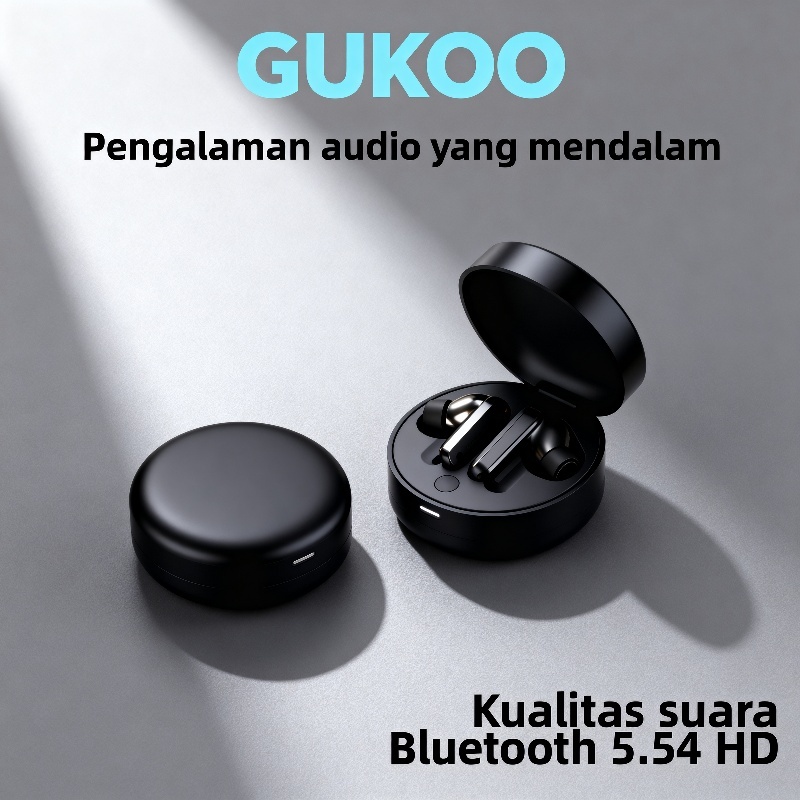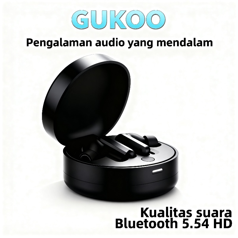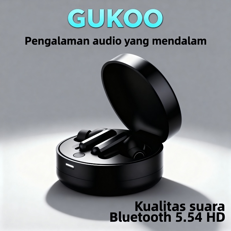 GUKOO TWS Earphone Desain BULAT Minimalis - Bluetooth 5.4, Baterai Super Awet, Suara Surround & Telpon Jernih CVC
