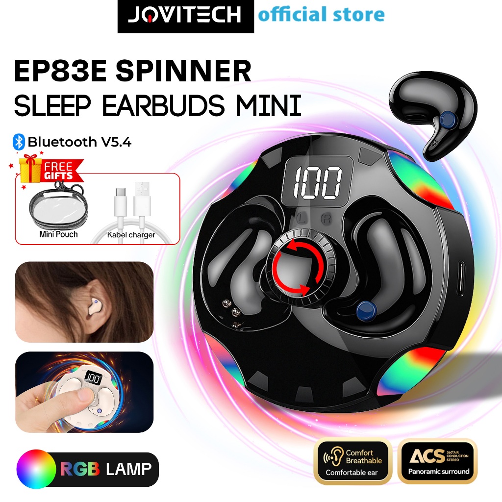 Jovitech EP83E TWS Sport Headset Bikers Earphones Bluetooth 5.4 RGB Lighting Comfort Sleep Earbuds Noice Canceling Full Bass Case TWS Anti Boring