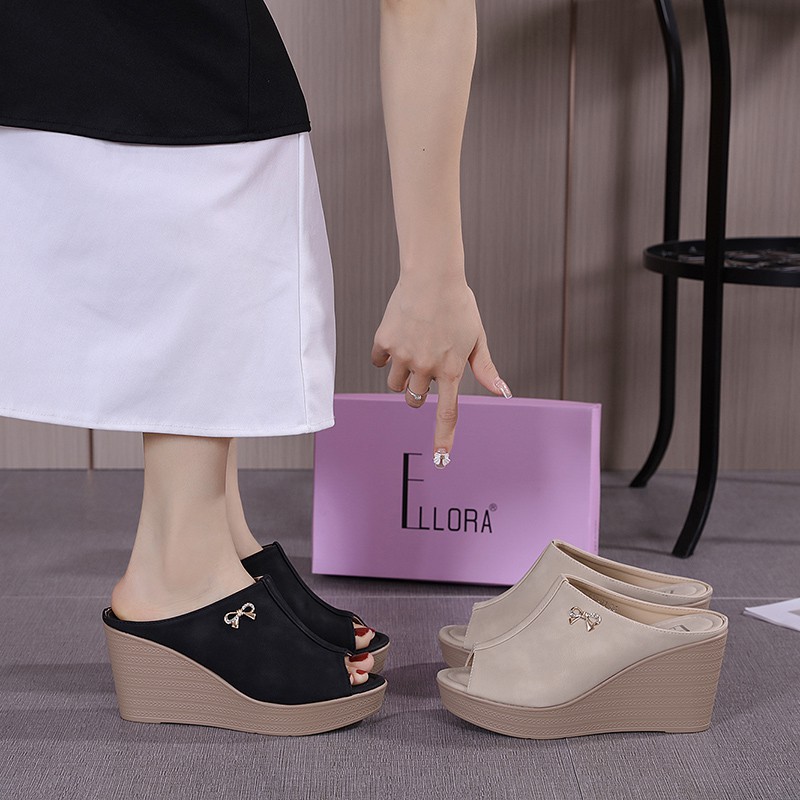 ELLORA EB530-01 Sandal Wedges Wanita Import 8.5cm