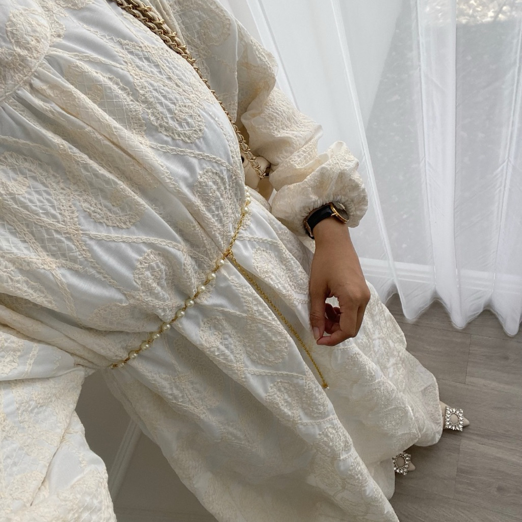 [GONAKU] Kalifa Signature Raya Dress Katun Bordir | Gamis Lebaran | Bumil Friendly | Maxi Dress Kondangan Full Furing | Gamis | Pattern Dress