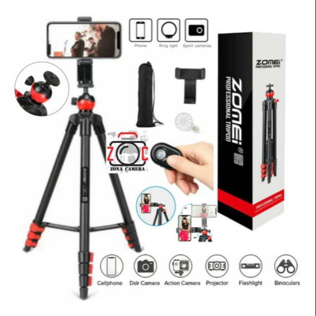 ZOMEI Tripod T60 Professional Ballhead Kamera DSLR Mirrorless Smartphone Hp Vlog Kaki Stand