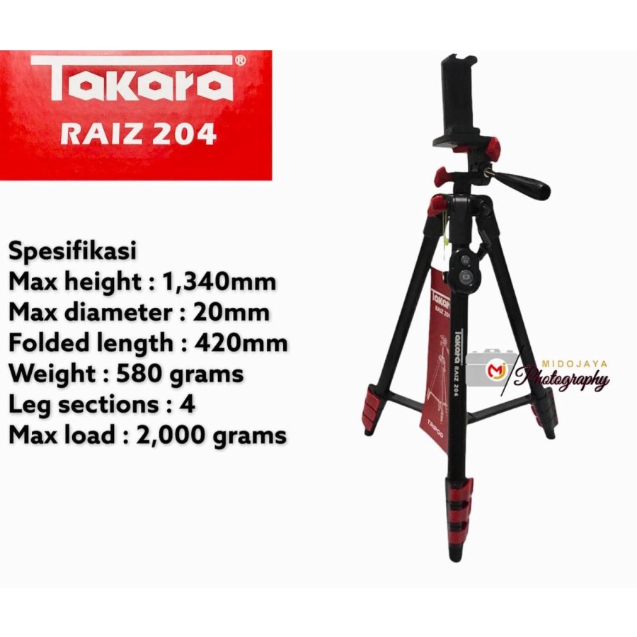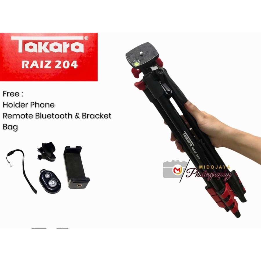 Tripod Takara Raiz 204 Free Holder Hp, Tas, Remote Bluetooth+Clip