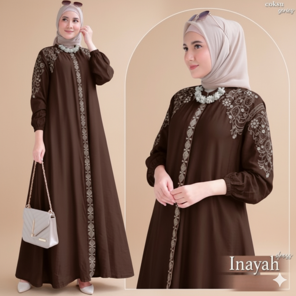 GAMIS INAYAH DRES BAHAN BORDIR BAJU KONDANGAN SERAGAMAN LEBARAN 2026 TERMURAH KUALITAS TERBAIK