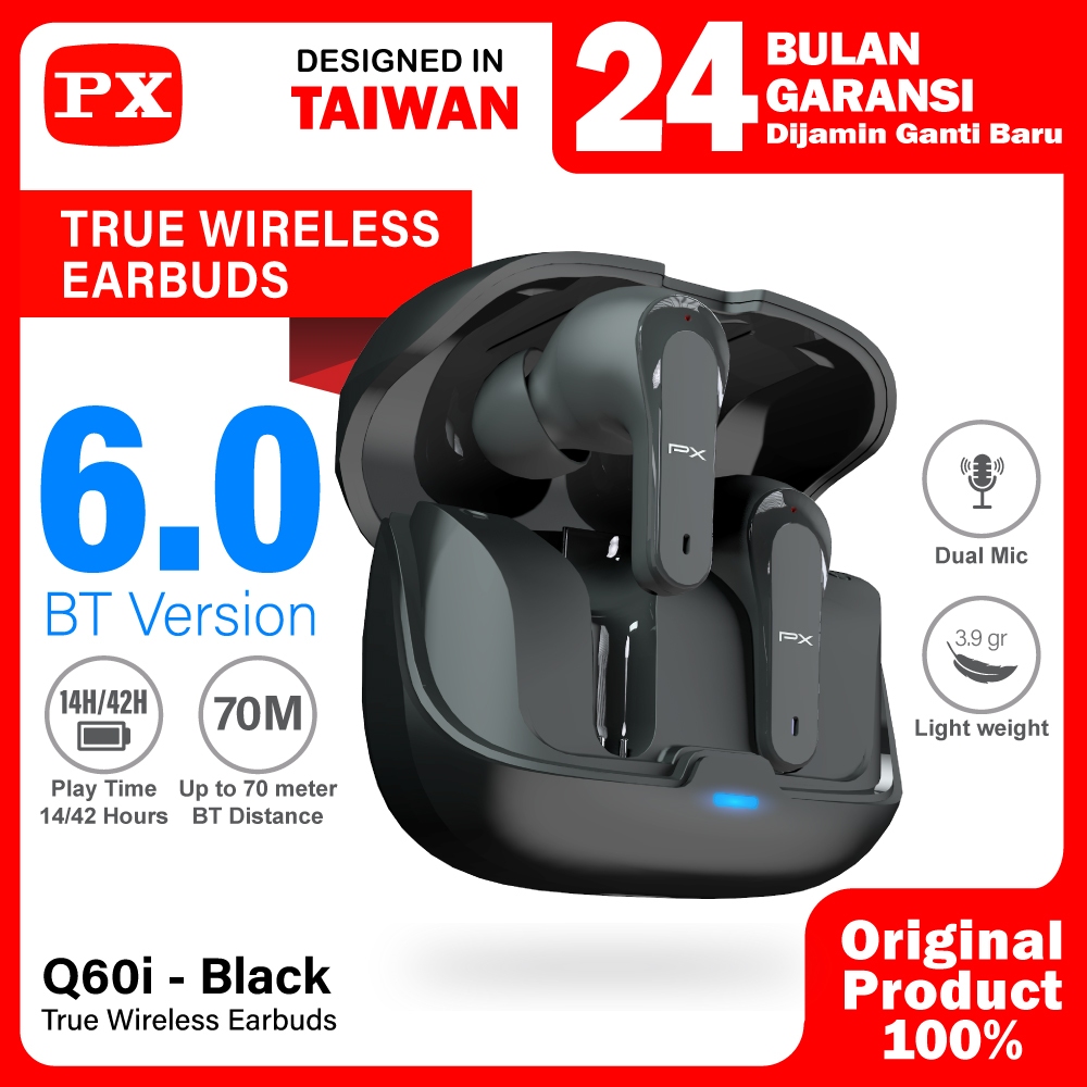 Headset TWS Earphone Bluetooth 6.0 Headphone Earbuds True Wireless PX Q60i - Black