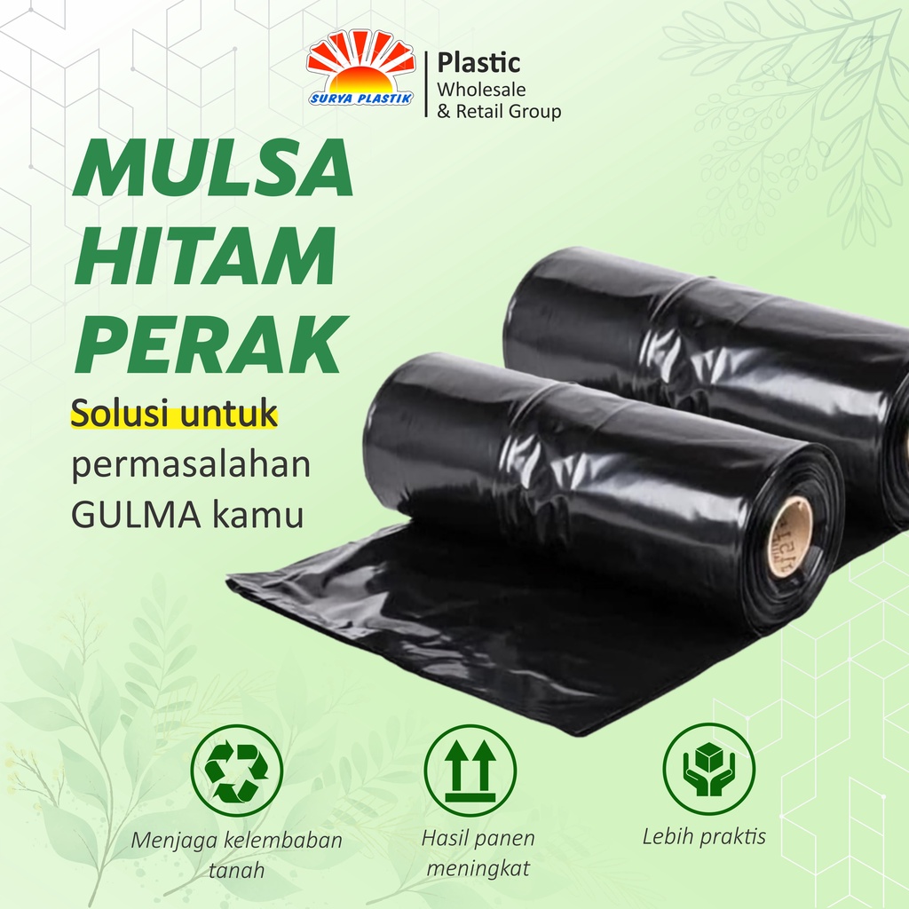 Mulsa hitam perak lebar 80cm / 100cm / 120cm / 160cm roll berat 10,6 Kg Roll