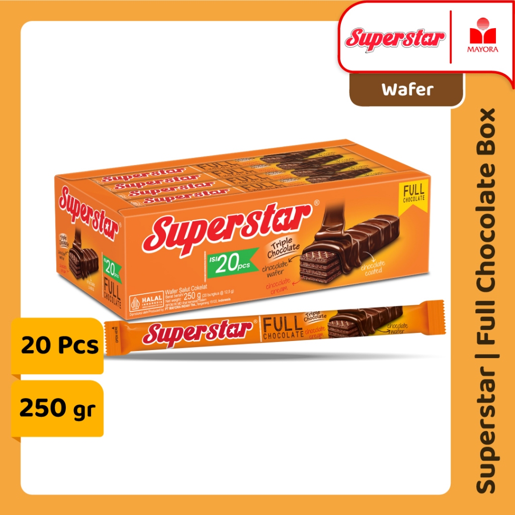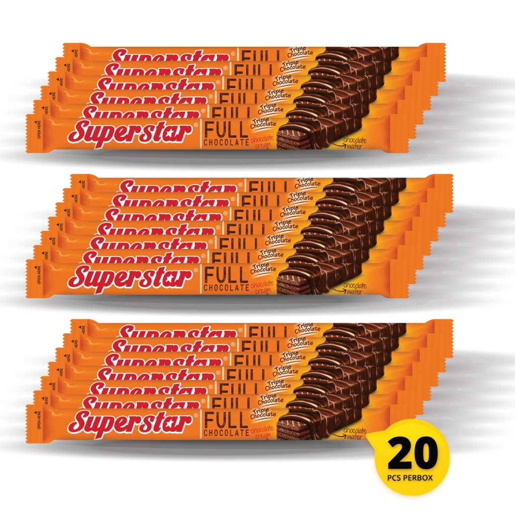 Wafer Superstar Full Chocolate Box Isi 20Pcs Wafer Renyah Enak Dan Ringan Full Cokelat Luar Dan Dalam Produk BPOM HALAL