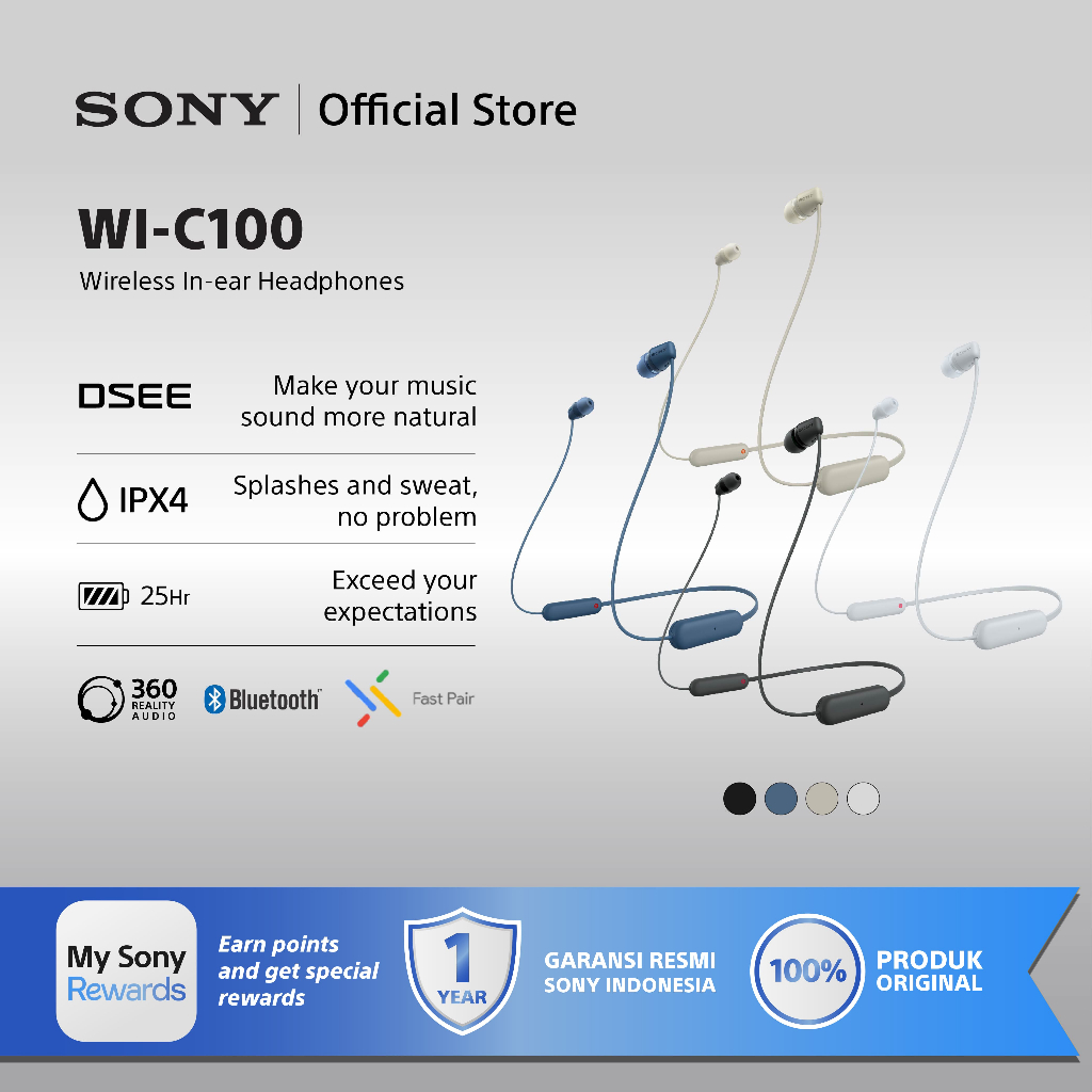 SONY WI-C100 In Ear Wireless Bluetooth Headset With Microphone For Android & IOS - Black [Battery Up to 25h] Earphone Headphone Handsfree
