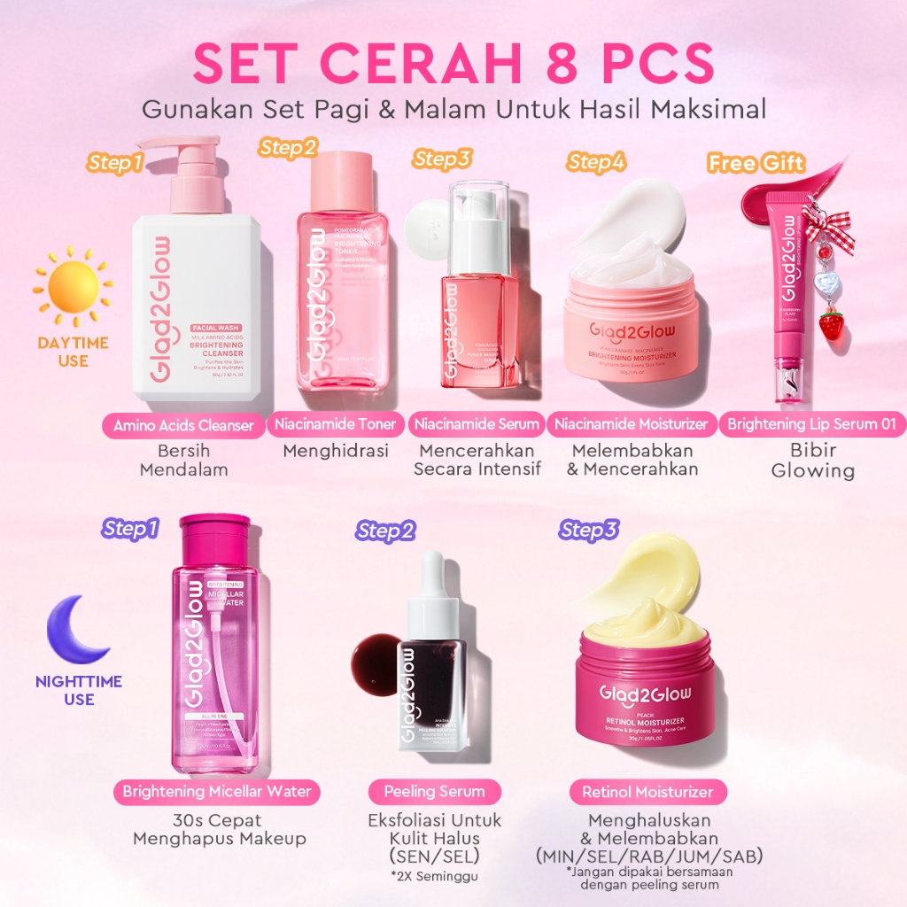 [Mall] Glad 2 Glow Official Store Paket Skincare 8in1 Super Glow Bundle