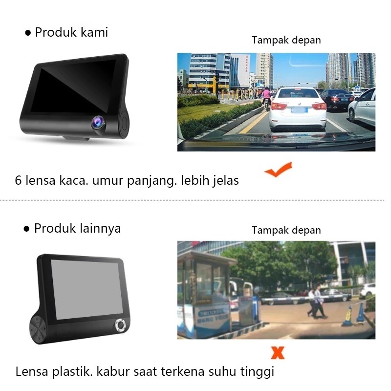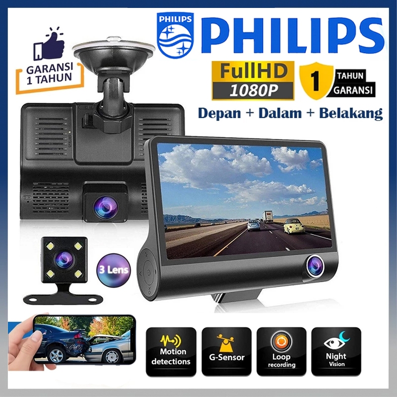 PHILIPS Dashcam Mobil 3 Cameras 1080P HD 4.0 Inch Night Vision Loop Recording + Gratis 128GB