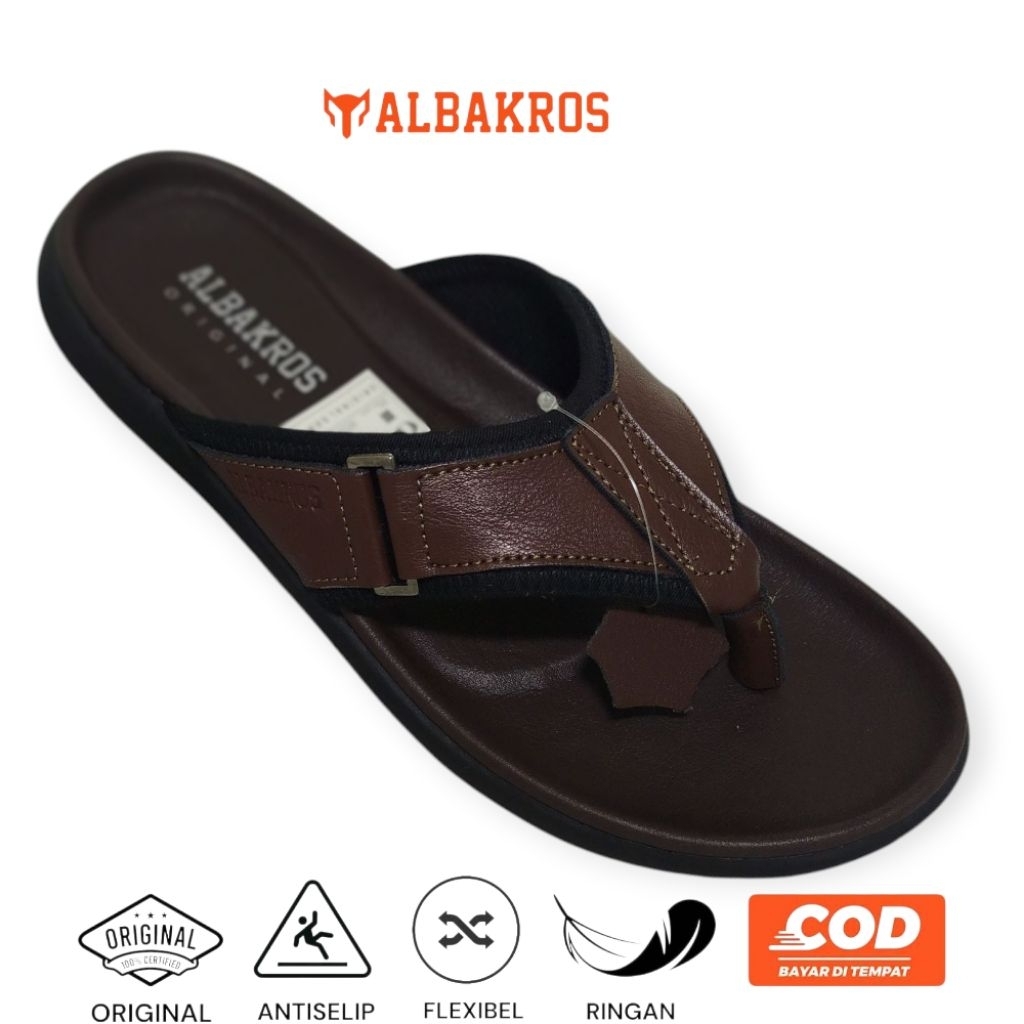 ALBAKROS - Sandal Jepit Kulit Venus Series Casual Empuk Anti Selip Ukuran 39-43 Untuk Pria