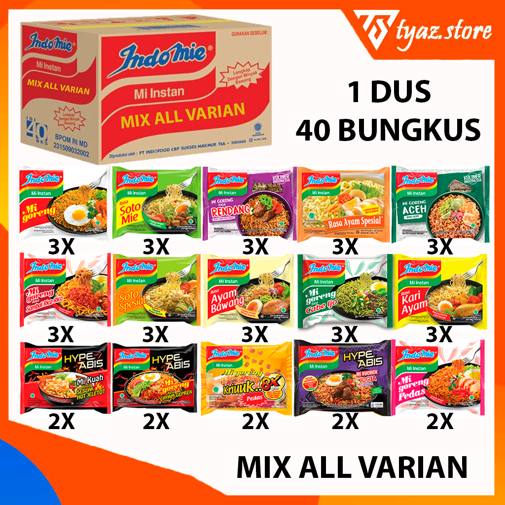 INDOMIE 1 DUS MIX ALL 15 VARIAN RASA ISI 40 BUNGKUS