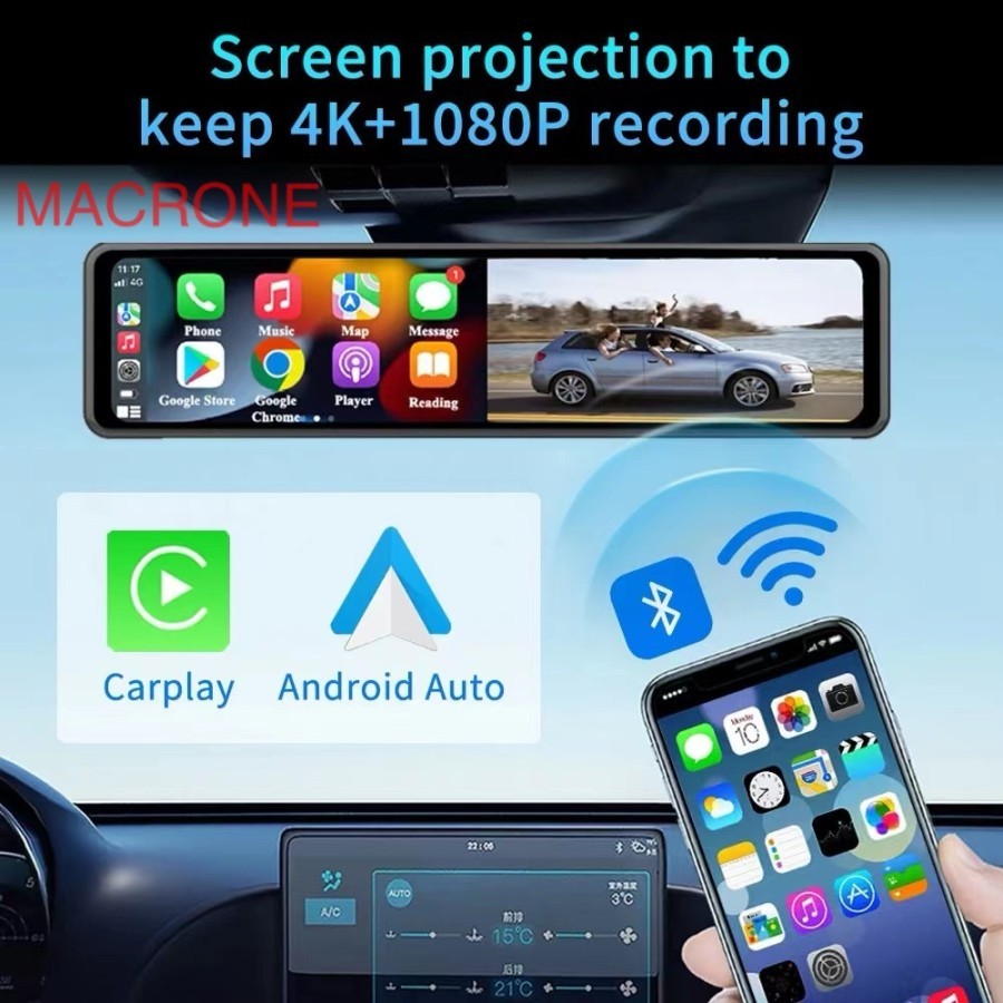 KAMERA DASHCAM DVR SPION MACRONE 4K+1080P SUPPORT CARPLAY & ANDROID AUTO 11"26 INCH - TANPA MEMORY