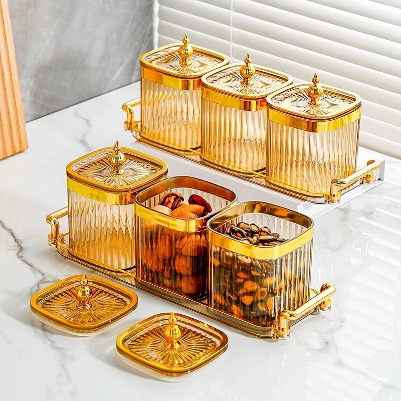 Toples Lebaran Toples Set Isi 3 4 6 Set Toples Penyimpanan Makanan dengan Nampa Snack Tray Akrilik Toples Nampan