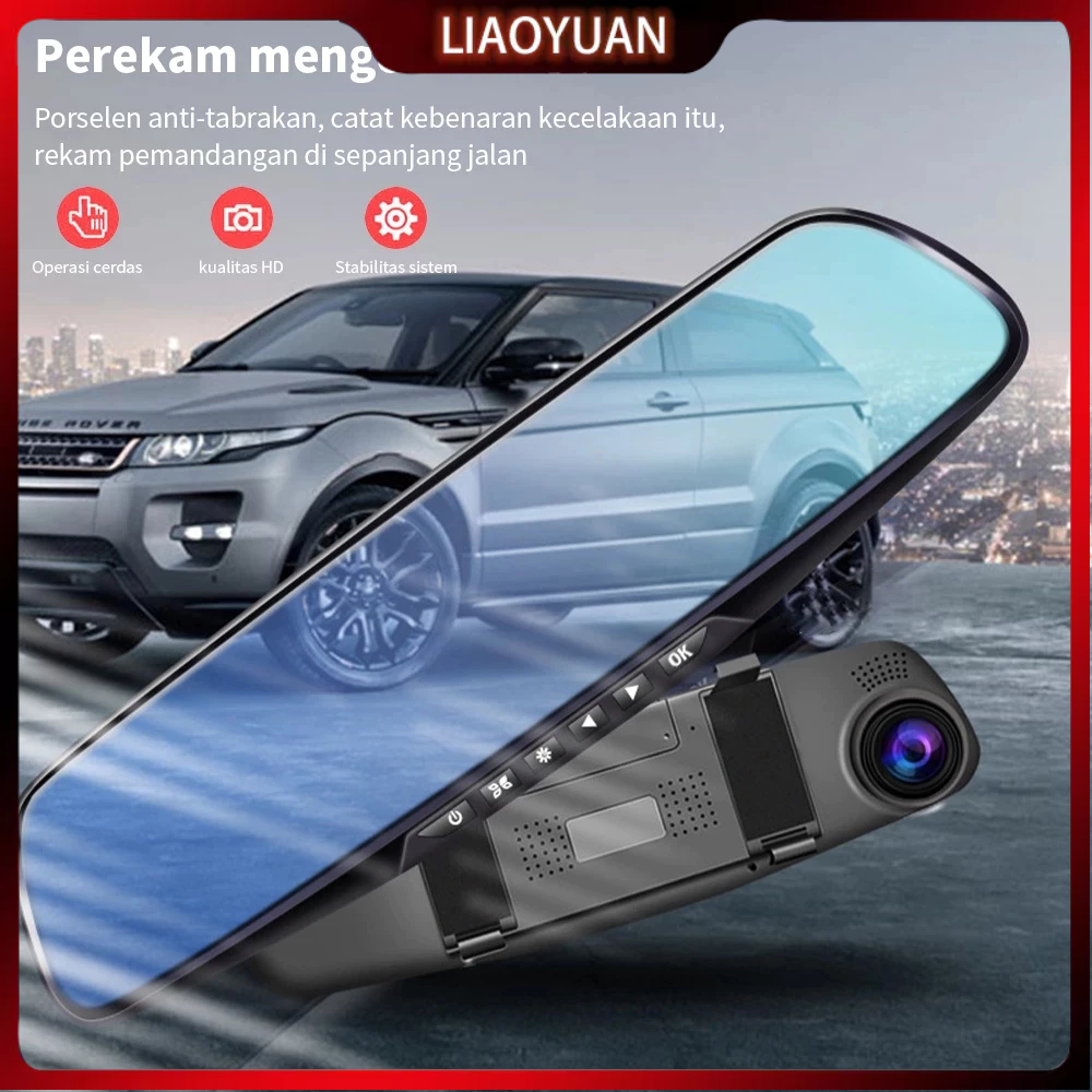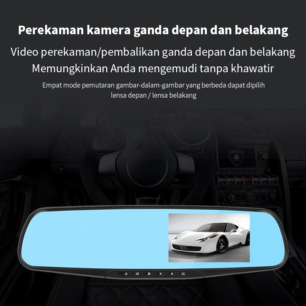 Dash Cam Car DVR Camera 4.3/4.5 Inch Resolusi Touch Screen Rearview Mirror Full HD 1080P Night Vision Stream Media Dual Lens Car Camera Spion 170° Wide Loop Recording