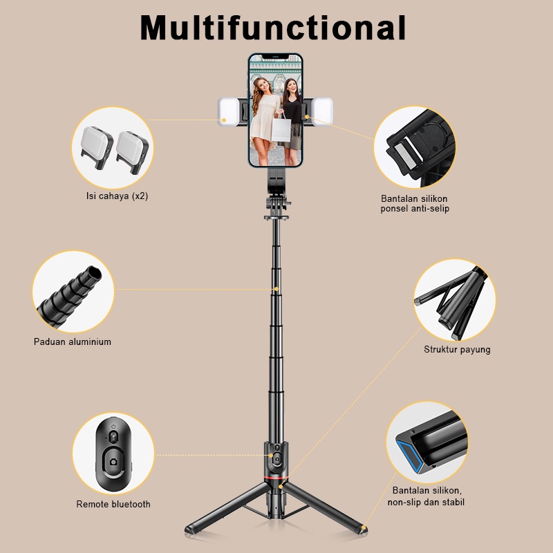 ZEVAN Tripod Selfie Bluetooth ZEVAN LED Flash Fill Light 108CM Tongsis HP Stand L12d