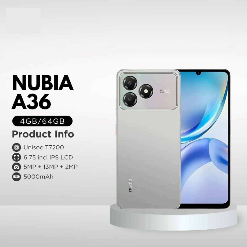 ZTE Nubia A36 4+8/64 GB | Display 6.75 Inch HD+ 90Hz - Unisoc T7200 Octa Core | 5000 Mah Battery 10W Charge - Garansi Re