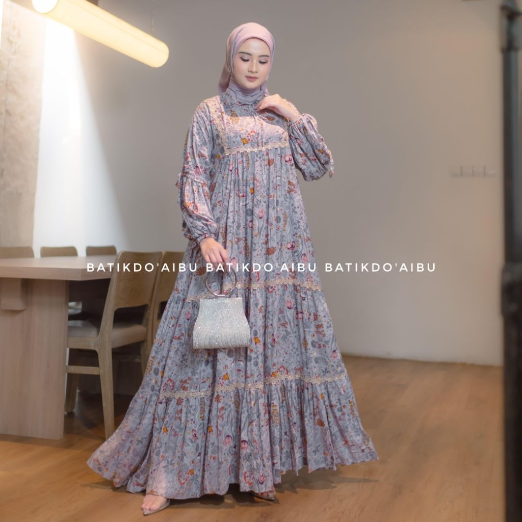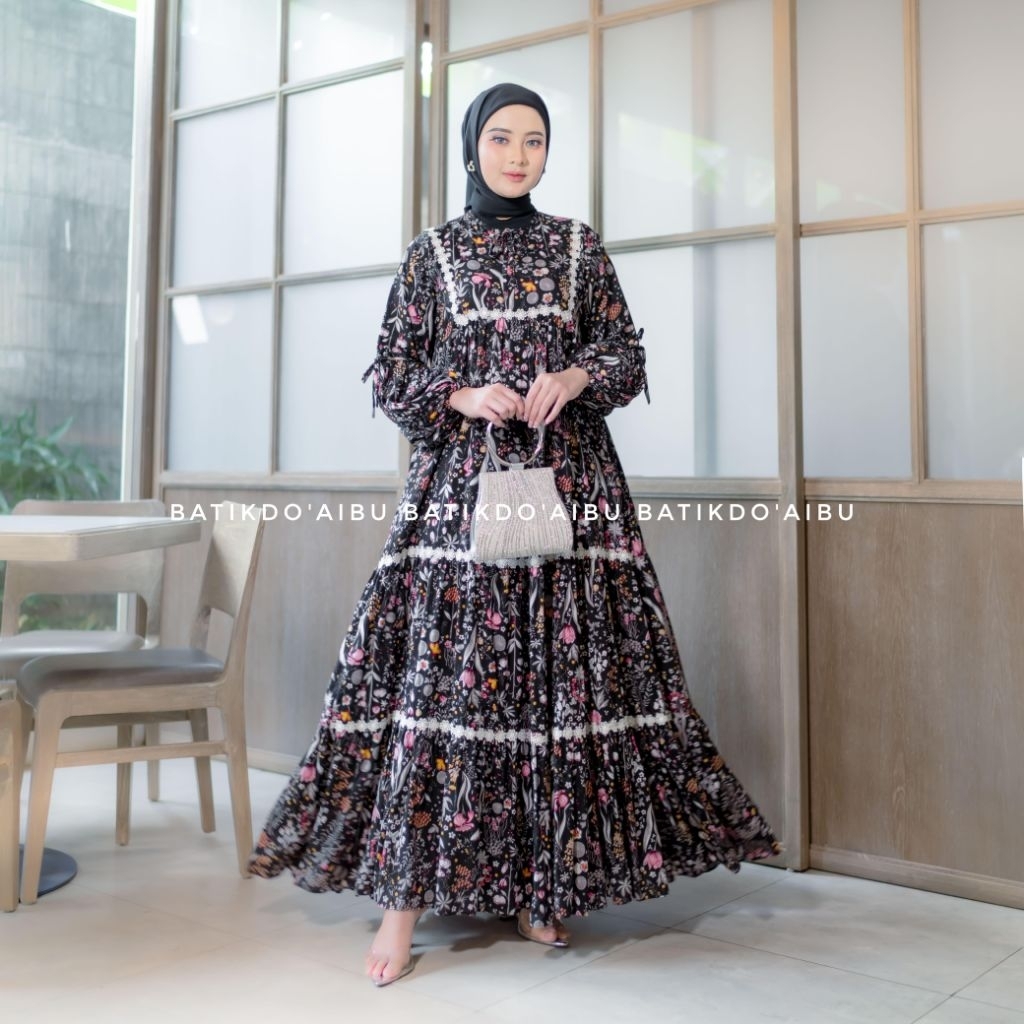 Hayvana Renda Dress - Gamis Rempel Renda Gamis Susun Lengan Balon Pita Gamis rayon premium