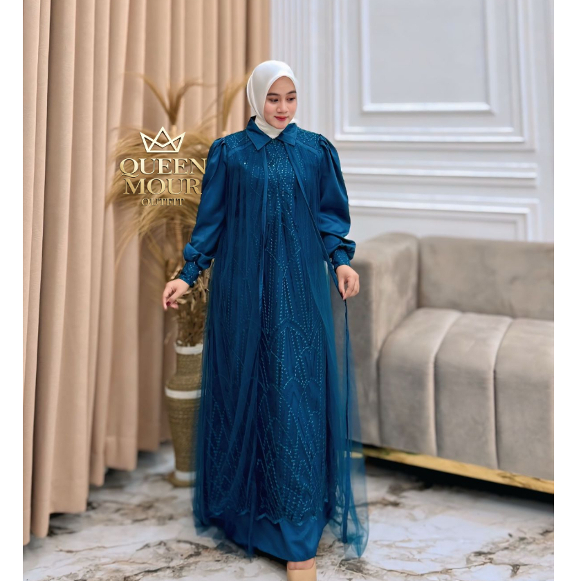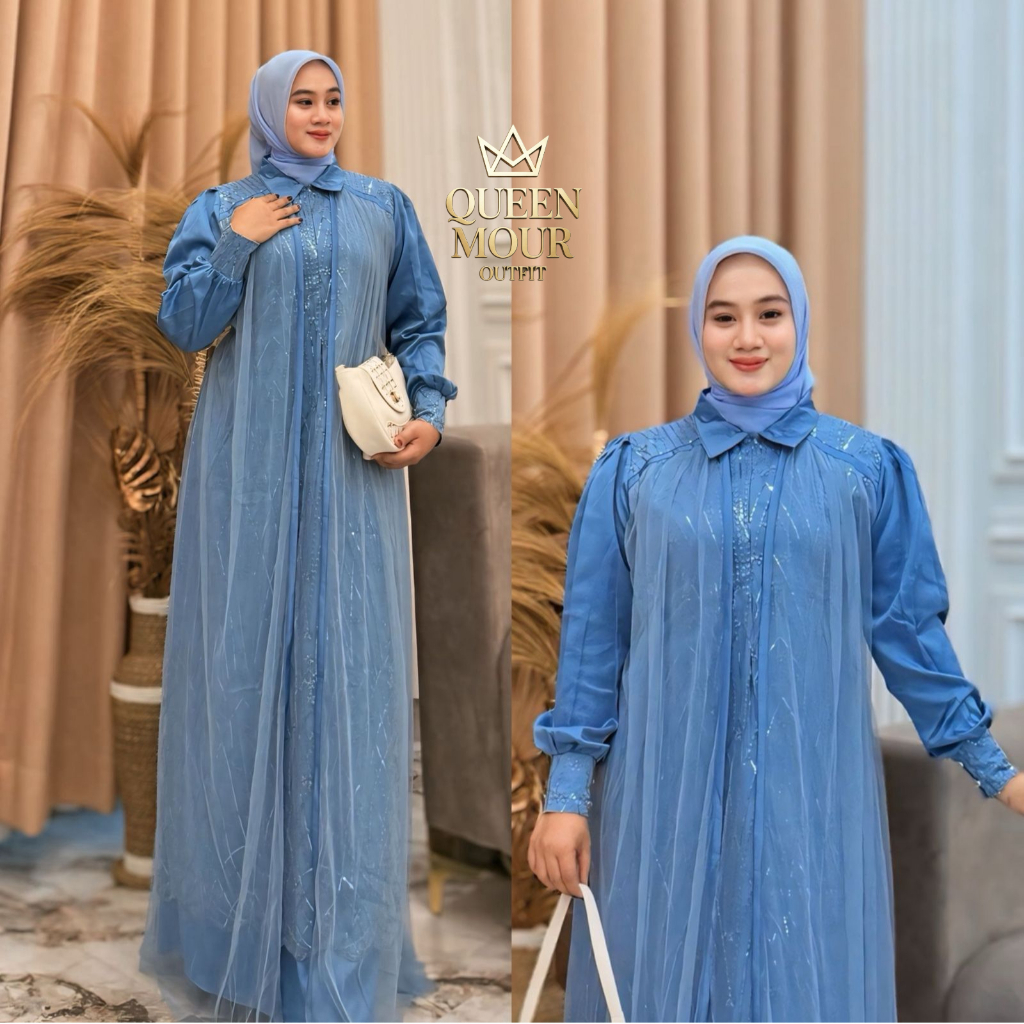 Gamis Ibu Ibu Terbaru Messa Dress Silk Mix Brukat Tille Premium Warna Viral Resleting Depan S - XXL