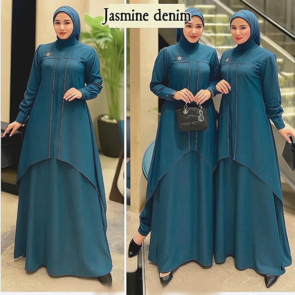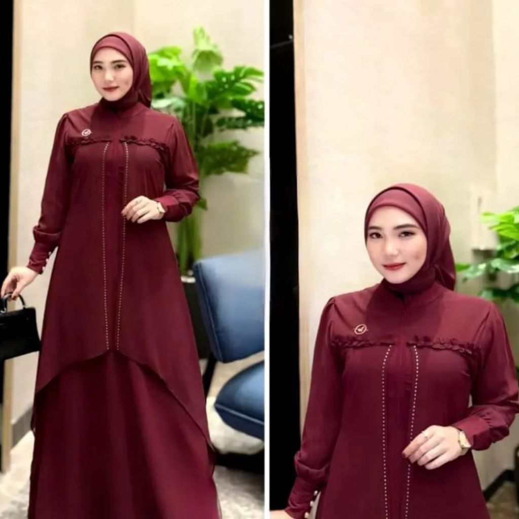 Luna Dress Swarosvky Cerruty Babydoll Full Furing Gamis Kondangan Warna Virall Emerald Blue Kekinian