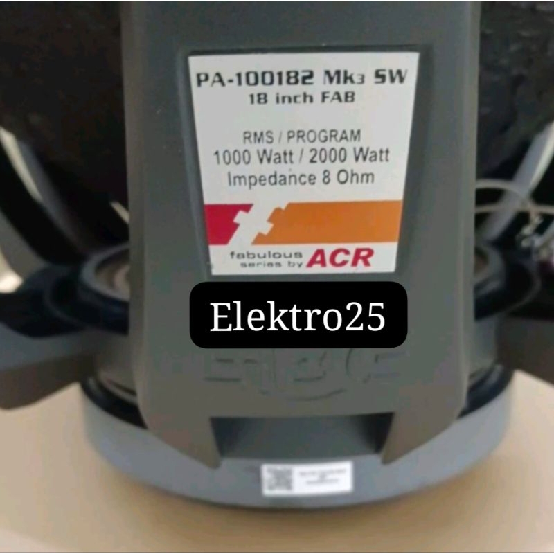 SPEAKER ACR FABULOUS 18" PA-100182-MK2 1300Watt / PA-100182-MK3 2000Watt SW FAB SUBWOOFER