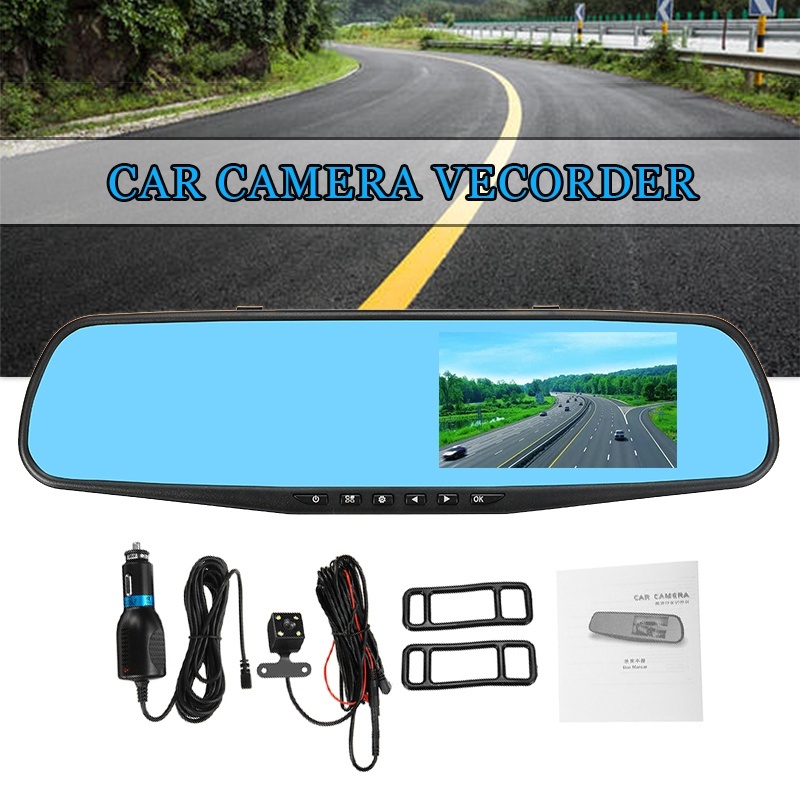 Full HD 1080P 170° Wide Loop Recording Car Camera Spion Dash Cam Car DVR Camera 4.3/4.5 Inch Resolusi Touch Screen Rearview Mirror Night Vision Stream Media Dual Lens